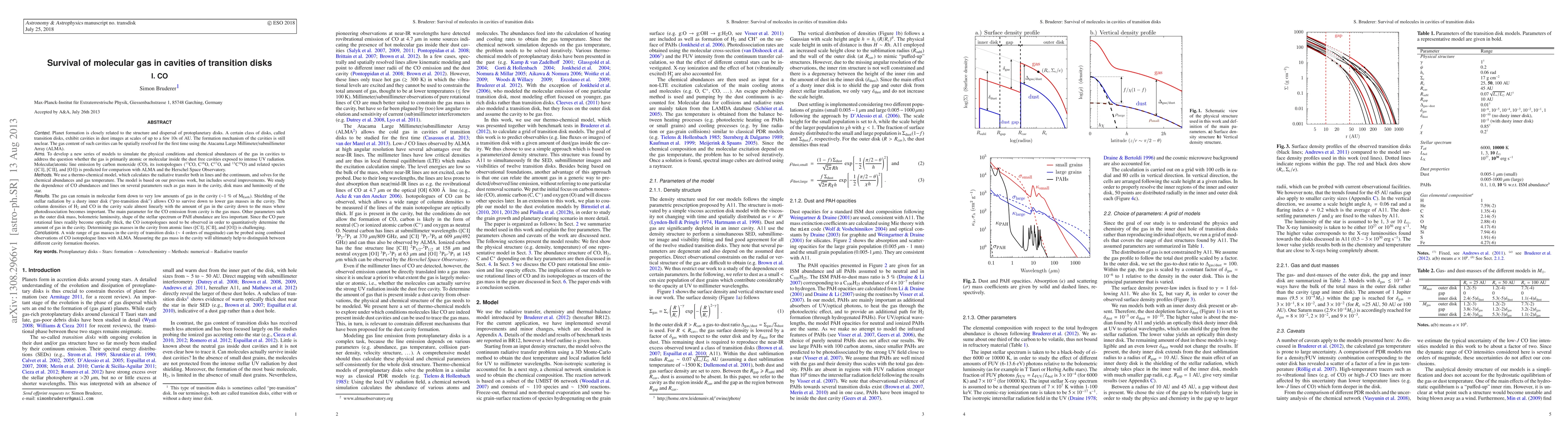 This paper investigates the survival of molecular gas in the cavities of transition disks using ALMA observations. The study finds that molecular gas, particularly CO, can persist in cavities due to shielding by a dusty inner disk, despite intense UV radiation. The gas mass in the cavity is the primary factor determining CO emission, with CO isotopologues aiding in precise gas mass determination.