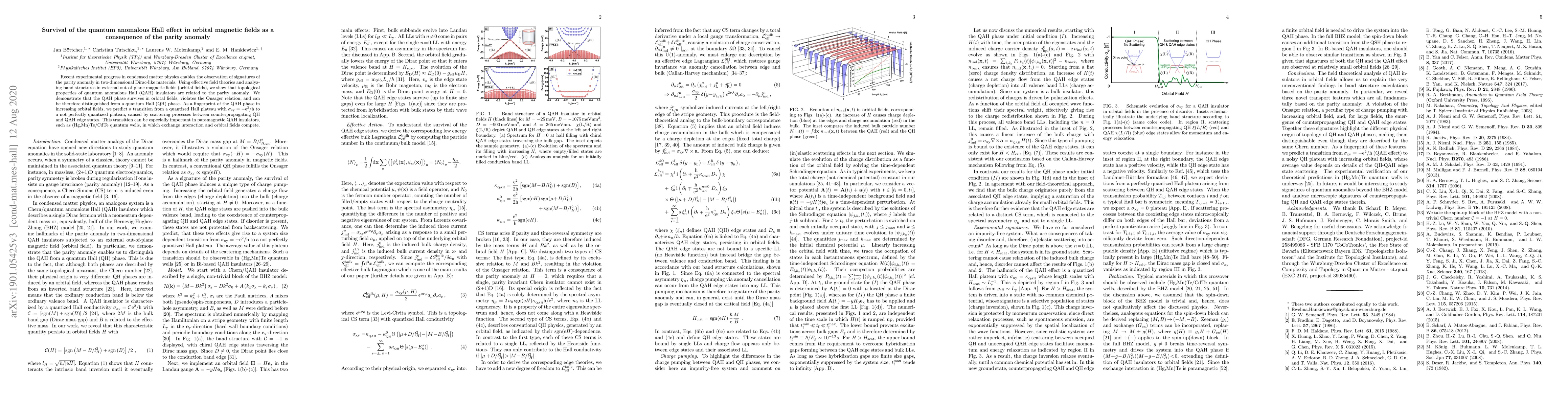 This paper demonstrates that quantum anomalous Hall (QAH) insulators exhibit topological properties linked to the parity anomaly, which allow them to survive in orbital magnetic fields. It predicts a transition in Hall plateaus in increasing orbital fields, distinguishing the QAH from quantum Hall phases.