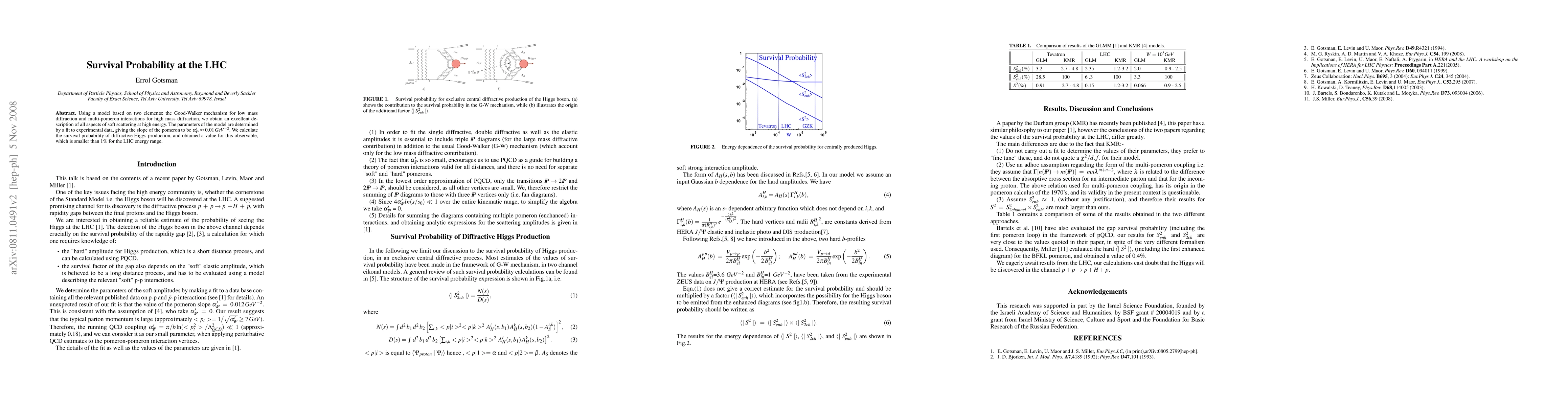 Using a model based on two elements: the Good-Walker mechanism for low mass diffraction and multi-pomeron interactions for high mass diffraction, we obtain an excellent description of all aspects of soft scattering at high energy. The parameters of the model are determined by a fit to experimental data, giving the slope of pomeron to be $\alpha'_{IP} \approx 0.01 GeV^{-2}$. We calculate the survival probability of diffractive Higgs production, and obtained a value for this observable, which is smaller than 1% for the LHC energy range.