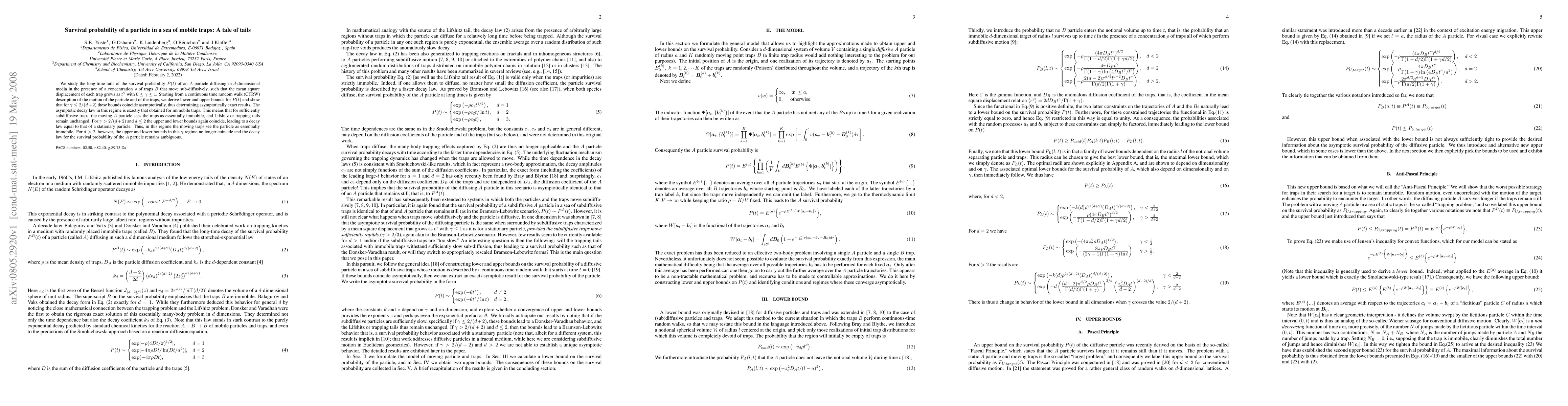 This paper investigates the survival probability of a diffusing particle in a medium with sub-diffusively moving traps, deriving bounds that show the particle perceives traps as immobile when their movement is sufficiently slow. For dimensions $d>2$, the exact decay law remains uncertain due to non-coinciding bounds.