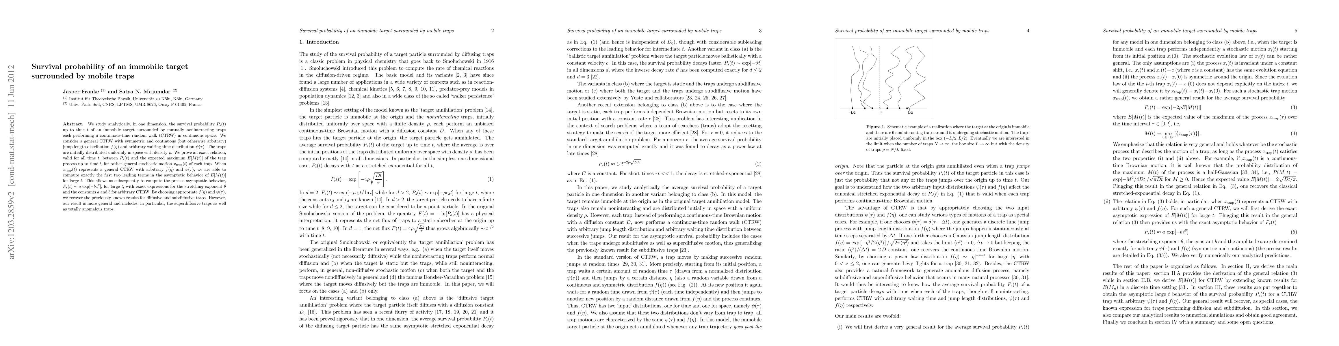 This paper analytically investigates the survival probability of an immobile target in one dimension surrounded by mobile traps performing continuous-time random walks. It establishes an exact relation between the survival probability and the expected maximum of the trap process, deriving precise asymptotic behavior for various types of traps, including diffusive, subdiffusive, superdiffusive, and totally anomalous.