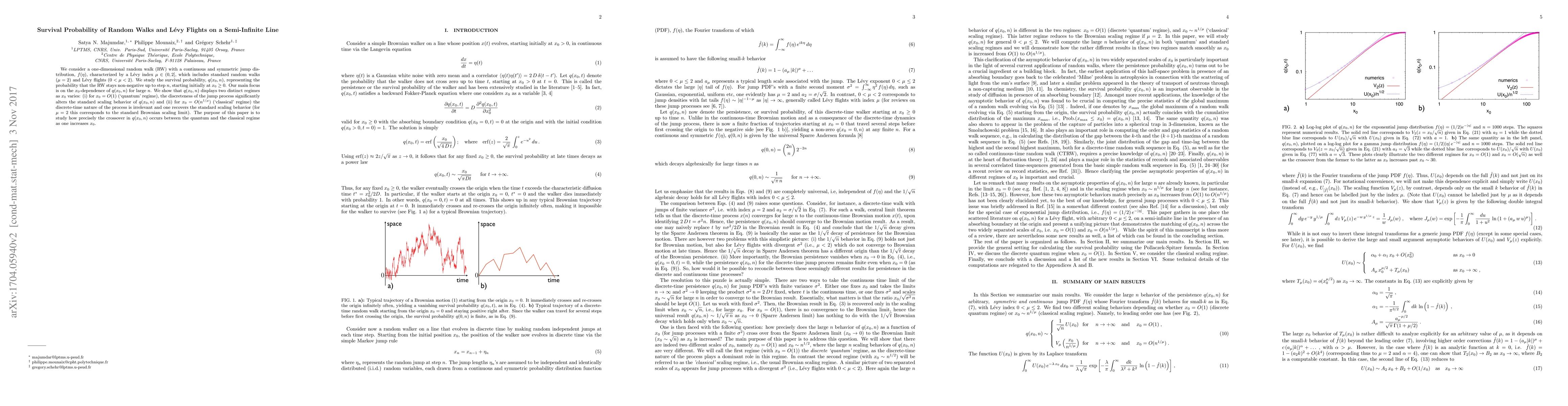 This paper investigates the survival probability of one-dimensional random walks with Lévy flights on a semi-infinite line, focusing on the $x_0$-dependence for large $n$. It identifies two distinct regimes: a "quantum regime" for small $x_0$ and a "classical regime" for larger $x_0$, exploring the crossover behavior between these regimes.