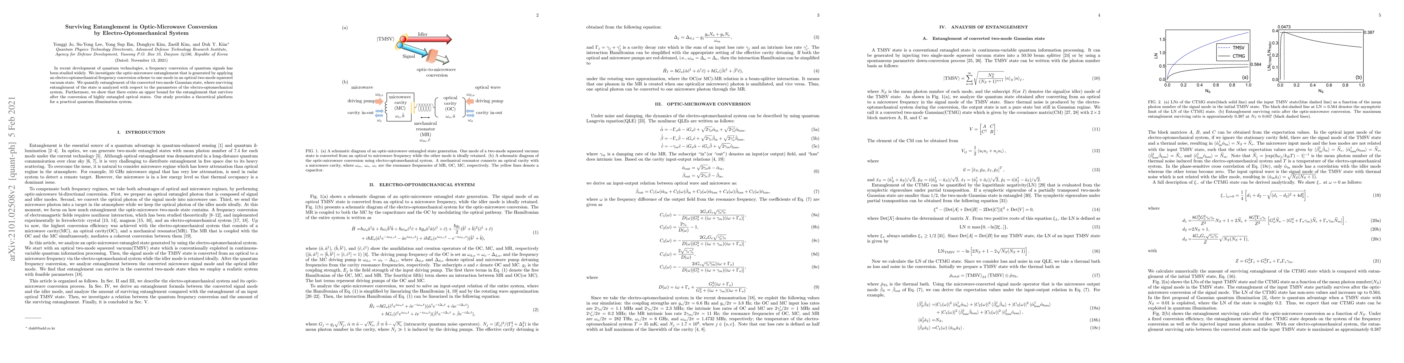 This paper investigates optic-microwave entanglement generated through an electro-optomechanical frequency conversion scheme, analyzing the surviving entanglement in the converted state. It establishes an upper bound for entanglement after conversion, offering a theoretical foundation for practical quantum illumination systems.