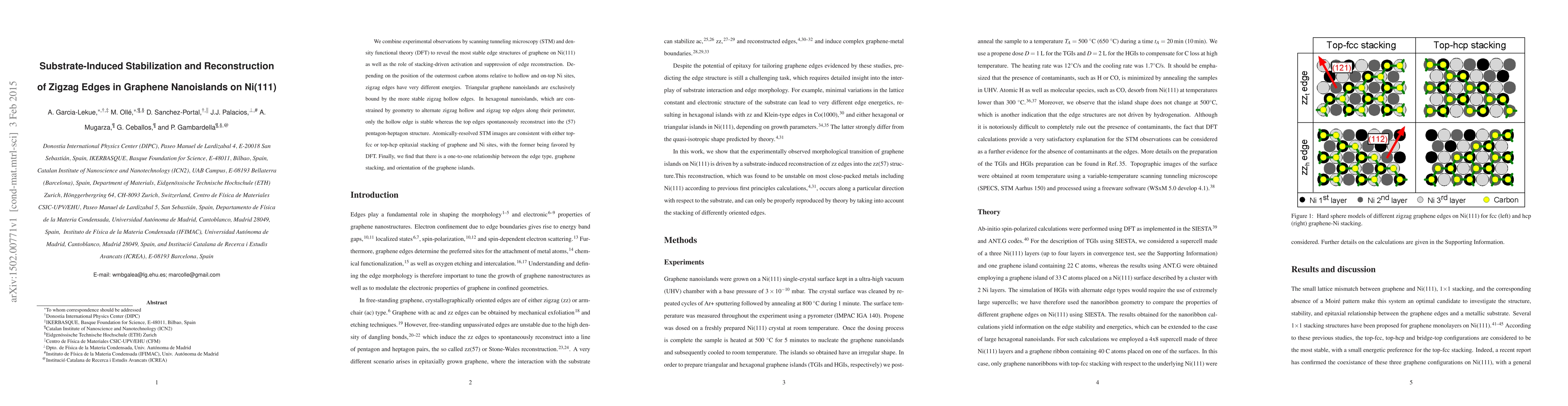 This study combines STM and DFT to identify the most stable zigzag edge structures in graphene nanoislands on Ni(111), revealing that zigzag hollow edges are preferred while zigzag top edges reconstruct into a pentagon-heptagon structure. The findings correlate edge stability with graphene stacking and orientation.