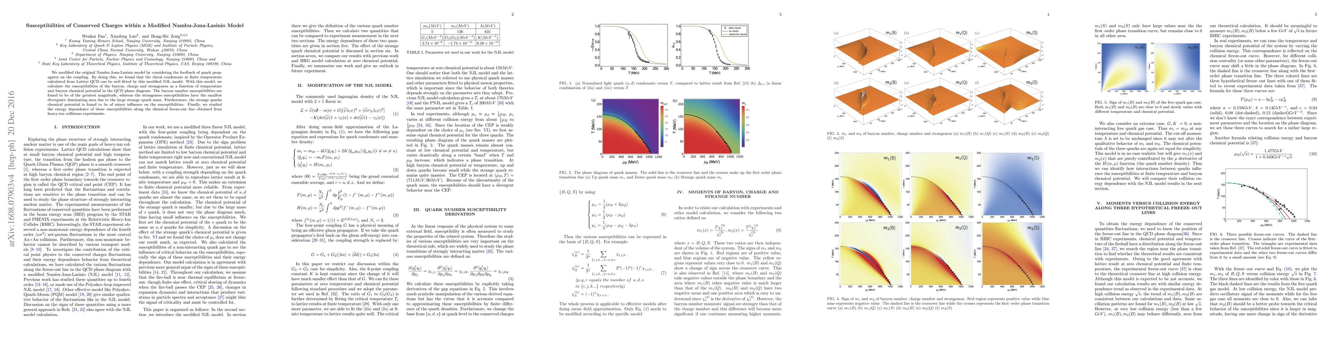This paper evaluates the second to fourth order susceptibilities of baryon number, charge, and strangeness in a modified Nambu-Jona-Lasinio model, finding baryon number susceptibilities to be the most significant. The study also compares theoretical predictions with experimental data, showing consistency at high collision energies but predicting more complex behavior near the critical end point at lower energies.