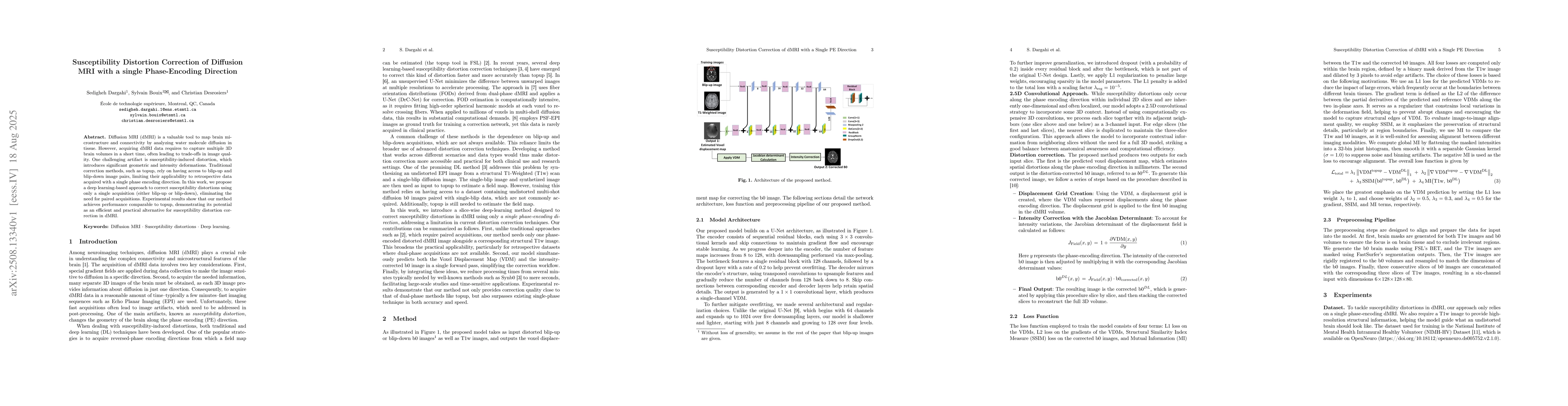 This work is novel in its use of a single phase-encoding direction for susceptibility distortion correction, contrasting with traditional methods that require paired acquisitions, and its application of a modified U-Net architecture for improved performance and efficiency.
