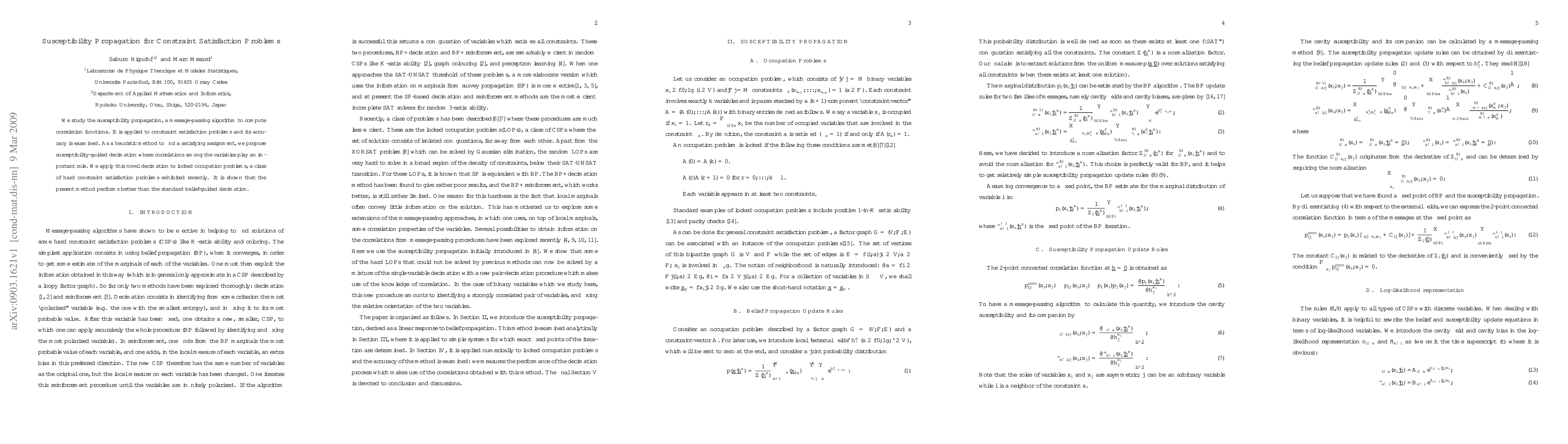 This paper introduces susceptibility propagation, a message-passing algorithm for computing correlation functions, and applies it to constraint satisfaction problems. The proposed susceptibility-guided decimation method, which leverages variable correlations, outperforms standard belief-guided decimation in solving locked occupation problems.