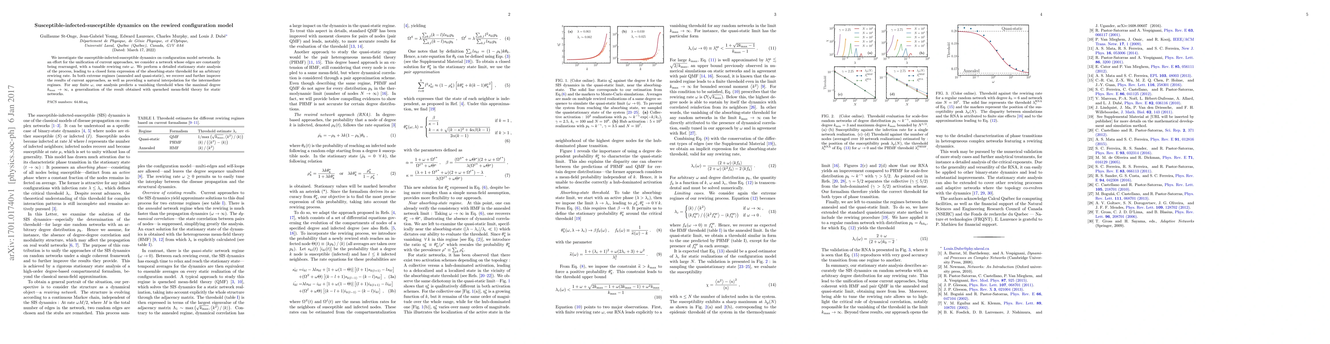 This paper studies the susceptible-infected-susceptible dynamics on rewired configuration model networks, deriving a closed form expression for the absorbing-state threshold at various rewiring rates. It generalizes existing results for both annealed and quasi-static regimes, providing a comprehensive analysis for intermediate rewiring rates.