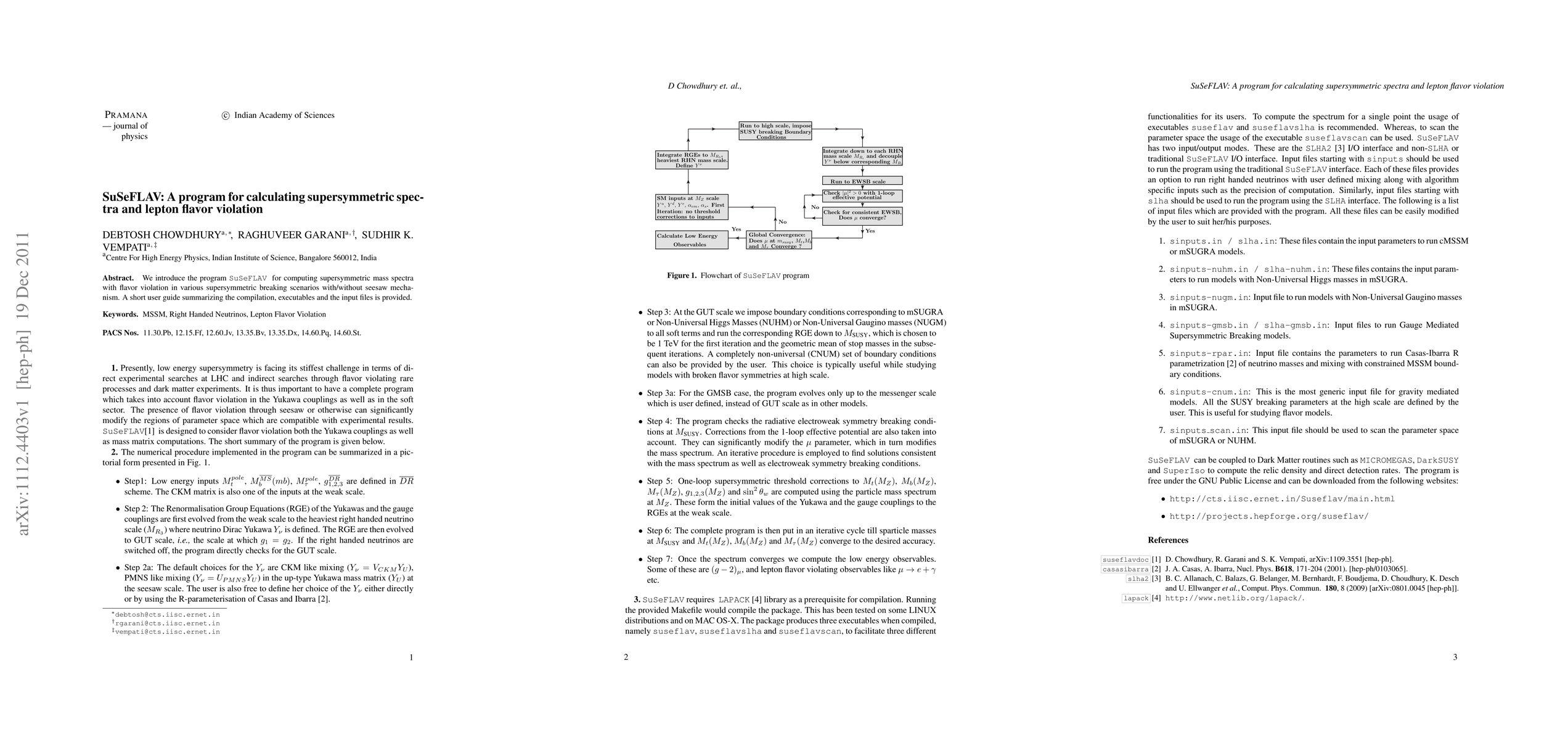 We introduce the program SuSeFLAV for computing supersymmetric mass spectra with flavor violation in various supersymmetric breaking scenarios with/without seesaw mechanism. A short user guide summarizing the compilation, executables and the input files is provided.