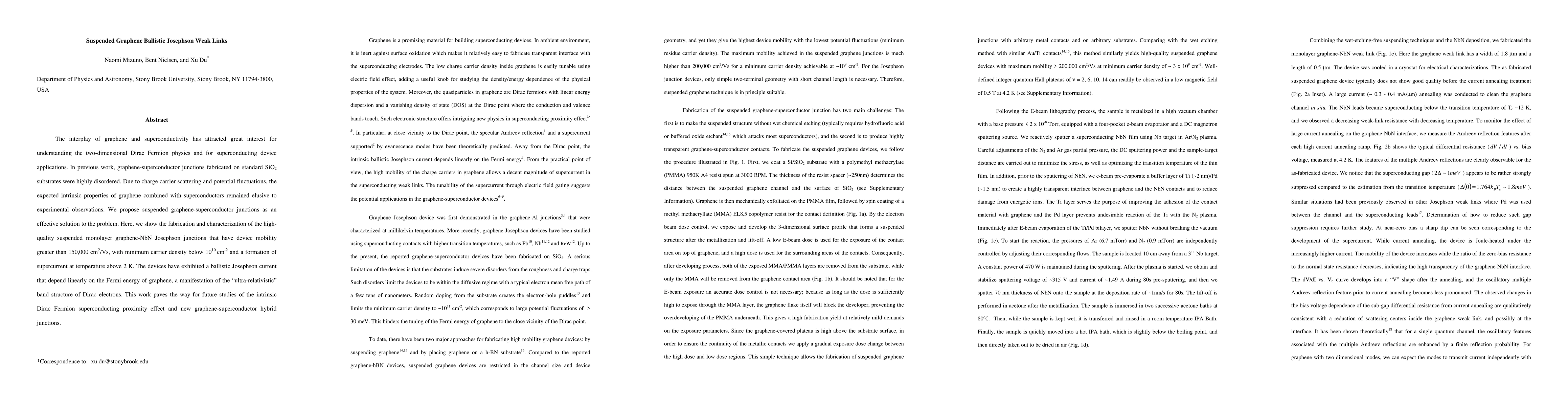 This research fabricates high-quality suspended graphene-NbN Josephson junctions, achieving ballistic Josephson current dependent on graphene's Fermi energy, thus unveiling intrinsic Dirac Fermion physics and paving the way for advanced graphene-superconductor applications.