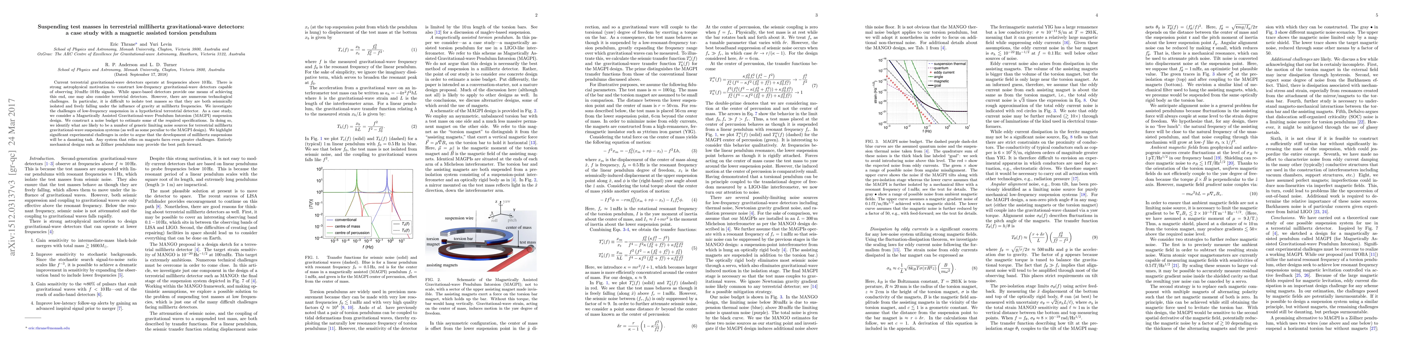 This paper explores the technological challenges of suspending test masses in terrestrial millihertz gravitational-wave detectors, focusing on a magnetic assisted torsion pendulum design called MAGPI. The study highlights significant noise sources and experimental difficulties, suggesting that purely mechanical designs may be more feasible for low-frequency gravitational-wave detection.