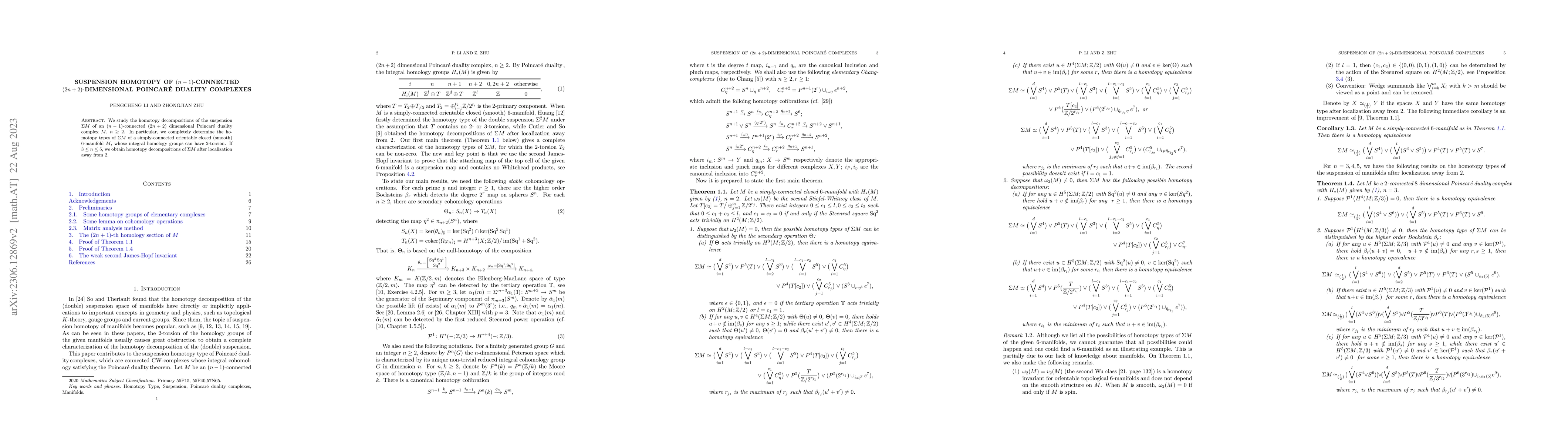 This paper investigates the homotopy decompositions of the suspension $\Sigma M$ for $(n-1)$-connected $(2n+2)$-dimensional Poincaré duality complexes, focusing on the simply-connected, orientable closed $6$-manifolds with possible $2$-torsion in their integral homology. It provides complete homotopy type determinations for these manifolds when $3\leq n\leq 5$, with localization away from $2$.