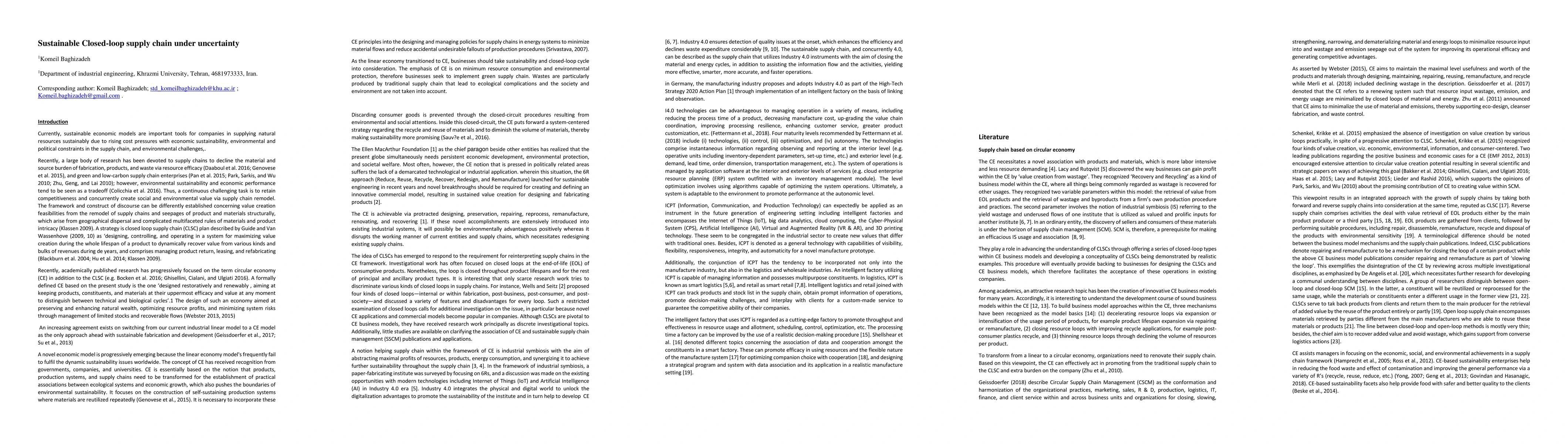 This study develops a sustainable closed-loop supply chain model under uncertainty for smart manufacturing, aiming to minimize costs and environmental effects while optimizing lead time.