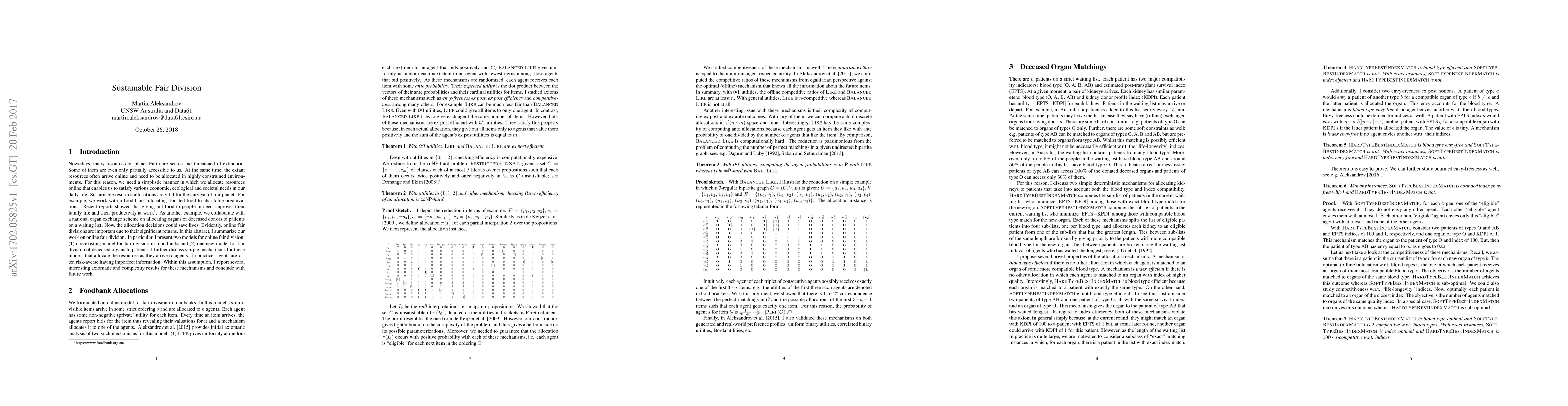 This paper presents two models for online fair division: an existing model for food banks and a new model for deceased organ allocation. It discusses mechanisms that allocate resources dynamically, considering agents' risk aversion and imperfect information, and reports on axiomatic and complexity results, concluding with future research directions.