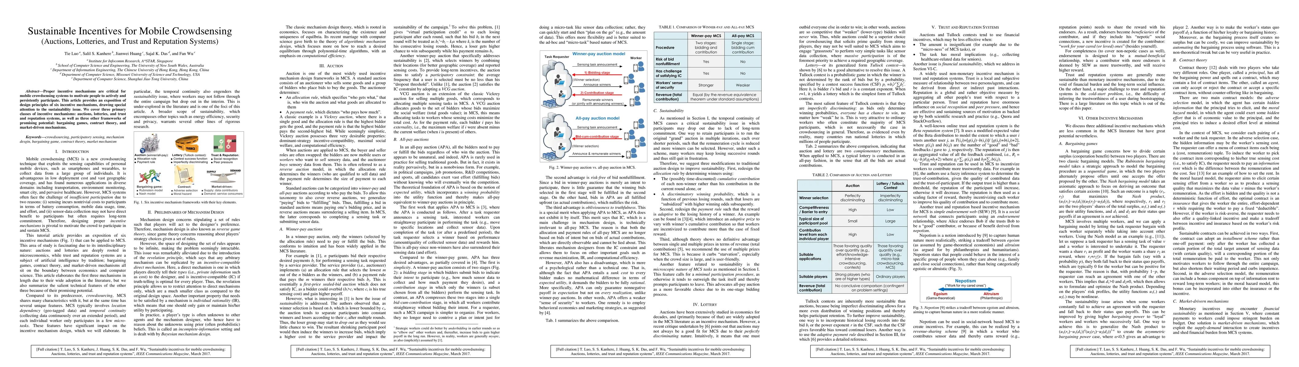 This paper explores sustainable incentive mechanisms for mobile crowdsensing, focusing on auctions, lotteries, and trust and reputation systems, while also discussing bargaining games, contract theory, and market-driven approaches to motivate persistent participation. The study emphasizes the importance of sustainability in these incentive designs.