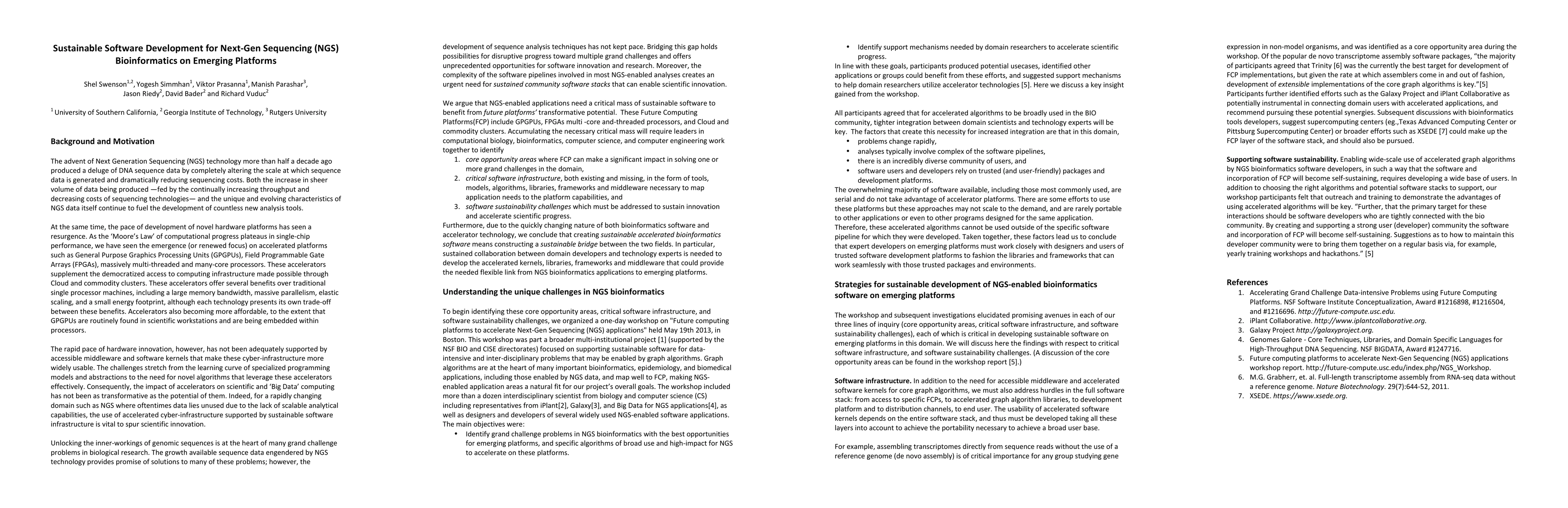 This paper discusses the need for sustainable software development to harness the full potential of next-generation sequencing (NGS) technologies. It emphasizes the necessity for interdisciplinary collaboration to bridge the gap between NGS applications and emerging computing platforms, focusing on the development of flexible, sustainable software infrastructure.