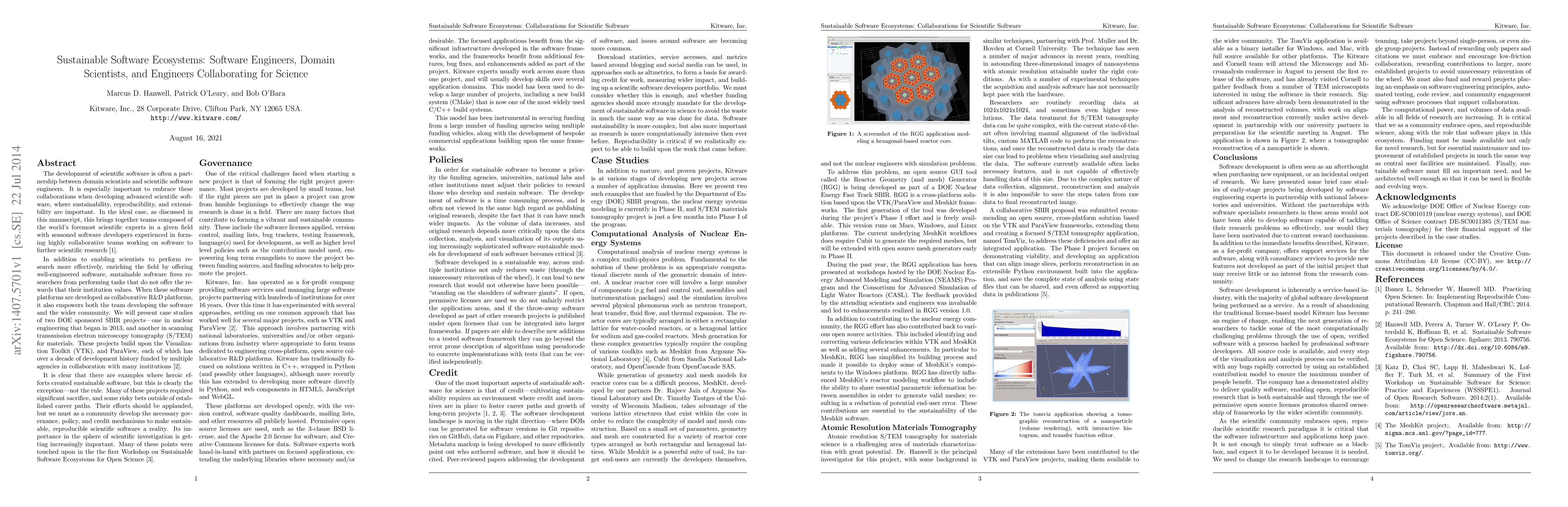 Two-line summary: The paper explores the collaborative development of advanced scientific software through partnerships between domain scientists and software engineers, emphasizing the importance of sustainability, reproducibility, and extensibility in such interdisciplinary teams. It advocates for the integration of top scientific experts and experienced software developers to advance scientific research.