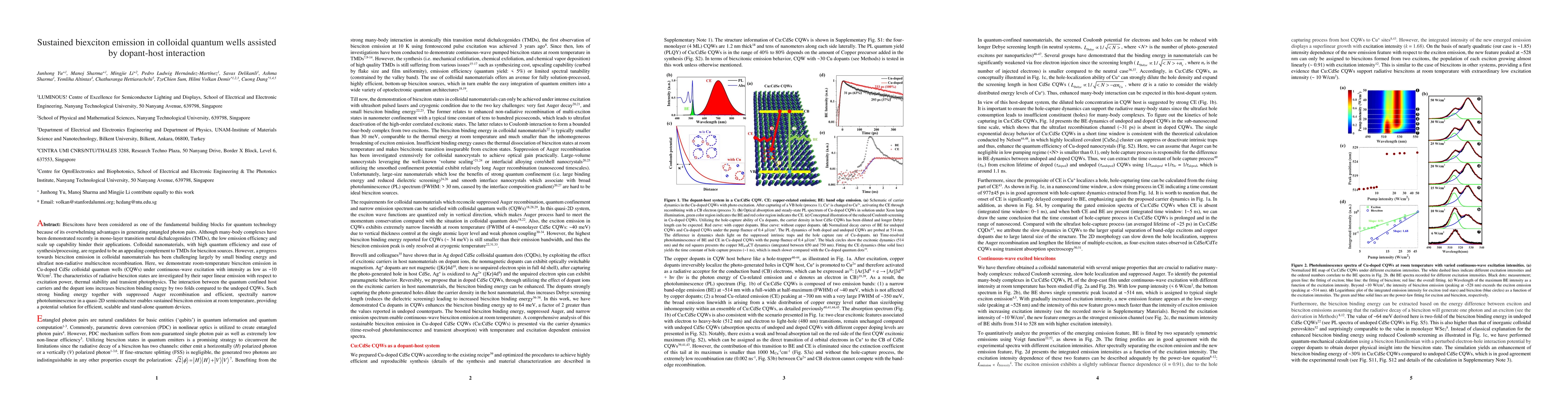 This paper demonstrates room-temperature biexciton emission in Cu-doped CdSe colloidal quantum wells, facilitated by enhanced biexciton binding energy due to dopant-host interaction. This approach offers a scalable solution for efficient quantum devices through sustained biexciton emission and suppressed Auger recombination.