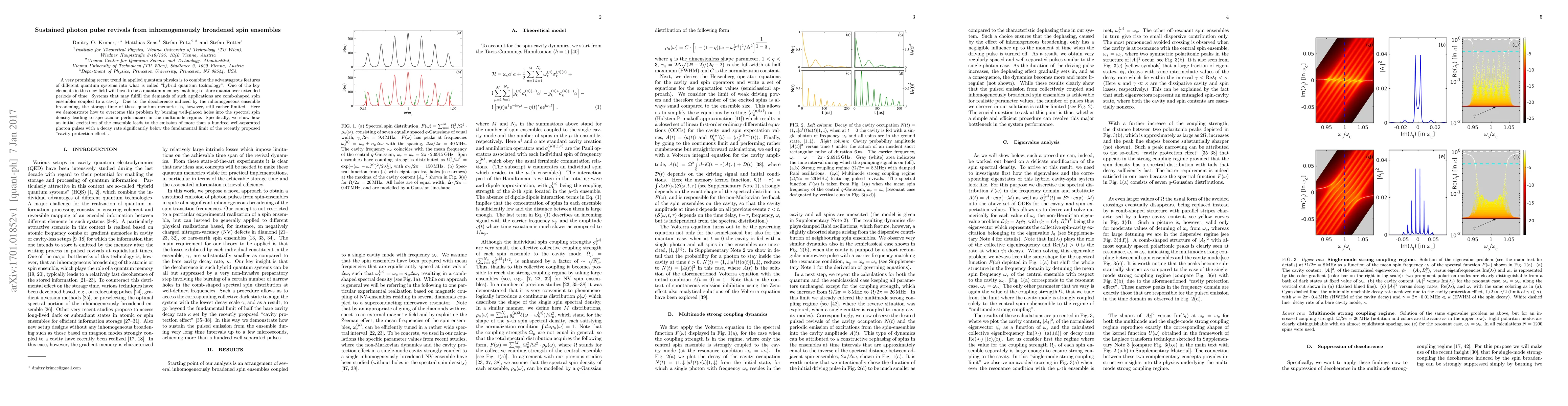 A very promising recent trend in applied quantum physics is to combine the advantageous features of different quantum systems into what is called "hybrid quantum technology". One of the key elements in this new field will have to be a quantum memory enabling to store quanta over extended periods of time. Systems that may fulfill the demands of such applications are comb-shaped spin ensembles coupled to a cavity. Due to the decoherence induced by the inhomogeneous ensemble broadening, the storage time of these quantum memories is, however, still rather limited. Here we demonstrate how to overcome this problem by burning well-placed holes into the spectral spin density leading to spectacular performance in the multimode regime. Specifically, we show how an initial excitation of the ensemble leads to the emission of more than a hundred well-separated photon pulses with a decay rate significantly below the fundamental limit of the recently proposed "cavity protection effect".