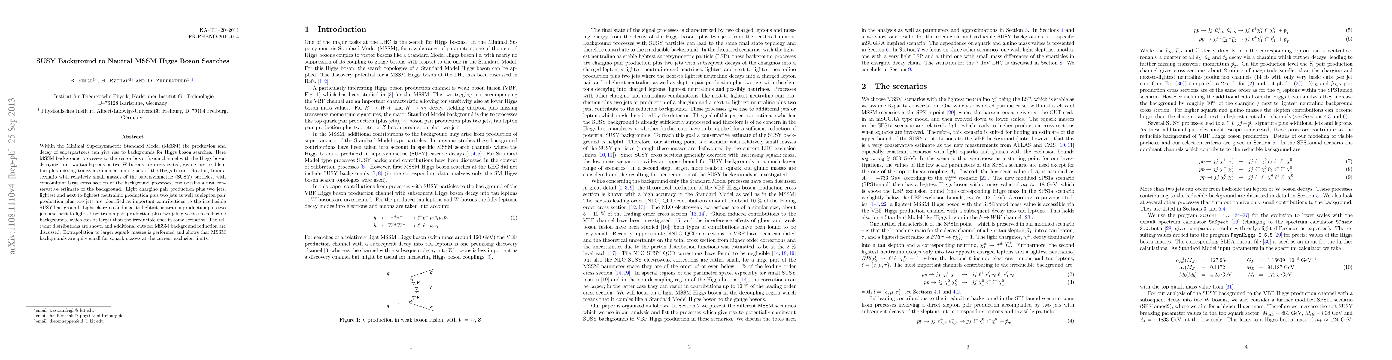 This paper investigates MSSM background processes affecting neutral Higgs boson searches in the vector boson fusion channel, focusing on the decay into tau leptons or W-bosons. It identifies significant SUSY contributions from light chargino, neutralino, and slepton pairs, and discusses methods to reduce these backgrounds, concluding that MSSM backgrounds are minimal for squark masses near current exclusion limits.