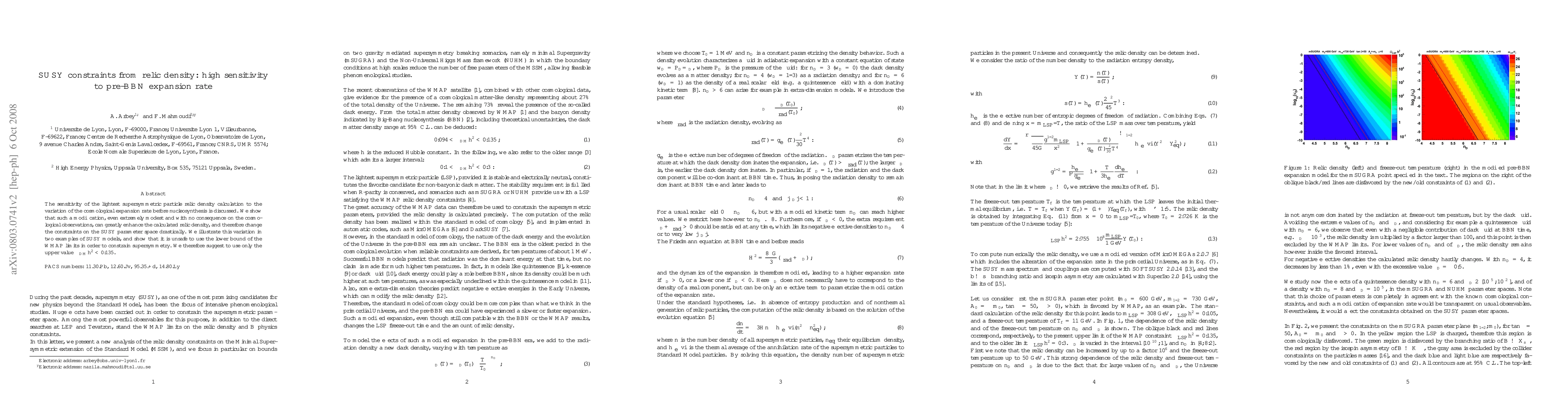 The sensitivity of the lightest supersymmetric particle relic density calculation to the variation of the cosmological expansion rate before nucleosynthesis is discussed. We show that such a modification, even extremely modest and with no consequence on the cosmological observations, can greatly enhance the calculated relic density, and therefore change the constraints on the SUSY parameter space drastically. We illustrate this variation in two examples of SUSY models, and show that it is unsafe to use the lower bound of the WMAP limits in order to constrain supersymmetry. We therefore suggest to use only the upper value Omega_DM h^2 < 0.135.