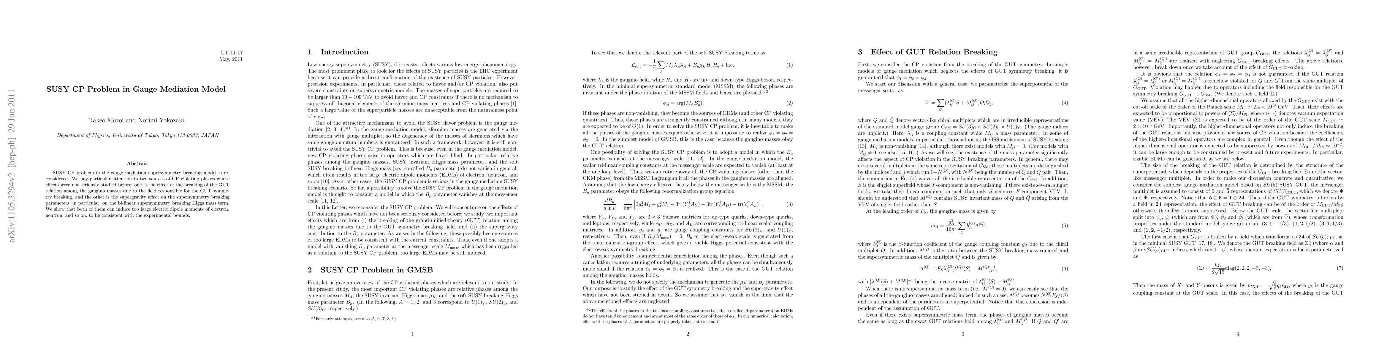 SUSY CP problem in the gauge mediation supersymmetry breaking model is reconsidered. We pay particular attention to two sources of CP violating phases whose effects were not seriously studied before; one is the effect of the breaking of the GUT relation among the gaugino masses due to the field esponsible for the GUT symmetry breaking, and the other is the supergravity effect on the supersymmetry breaking parameters, in particular, on the bi-linear supersymmetry breaking Higgs mass term. We show that both of them can induce too large electric dipole moments of electron, neutron, and so on, to be consistent with the experimental bounds.