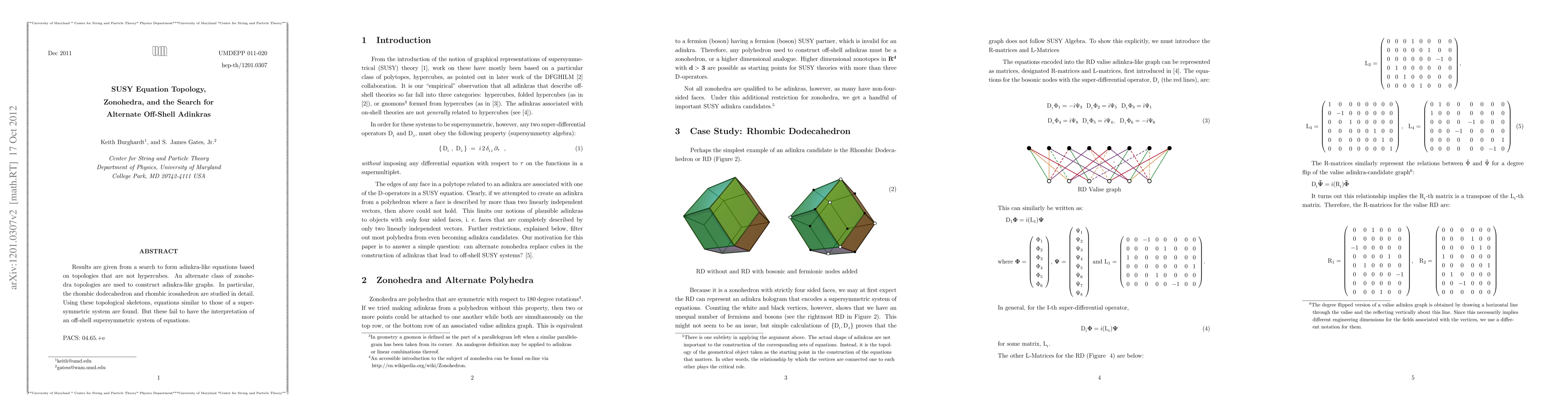 Results are given from a search to form adinkra-like equations based on topologies that are not hypercubes. An alternate class of zonohedra topologies are used to construct adinkra-like graphs. In particular, the rhombic dodecahedron and rhombic icosahedron are studied in detail. Using these topological skeletons, equations similar to those of a supersymmetric system are found. But these fail to have the interpretation of an off-shell supersymmetric system of equations.