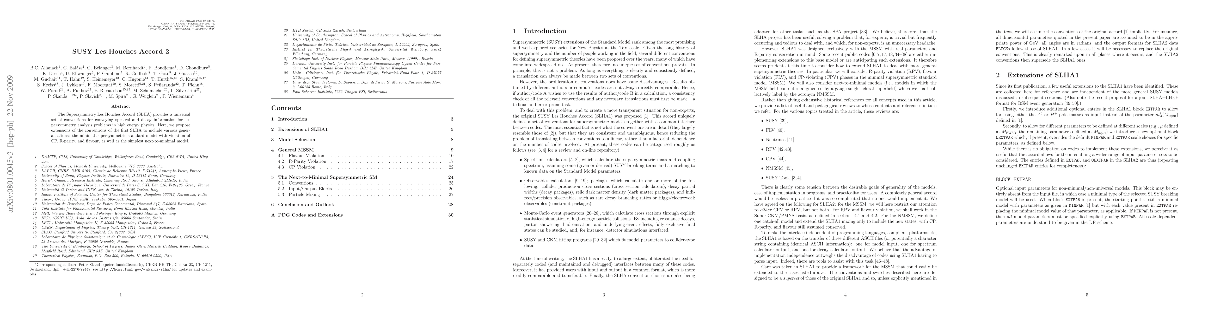 The research proposes extensions to the Supersymmetry Les Houches Accord (SLHA) to include various generalizations such as the minimal supersymmetric standard model with violation of CP, R-parity, and flavour, as well as the simplest next-to-minimal model.