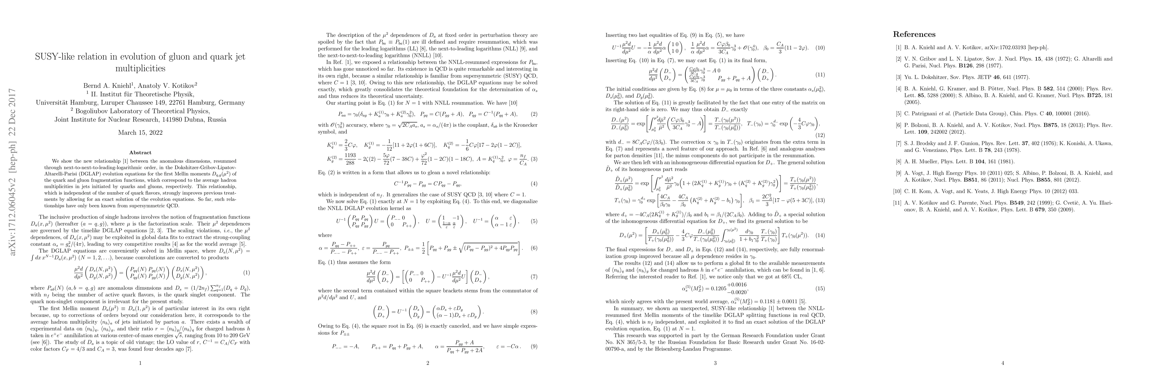 We show the new relationship [1] between the anomalous dimensions, resummed through next-to-next-to-leading-logarithmic order, in the Dokshitzer-Gribov-Lipatov-Altarelli-Parisi (DGLAP) evolution equations for the first Mellin moments D{q,g}(\mu2) of the quark and gluon fragmentation functions, which correspond to the average hadron multiplicities in jets initiated by quarks and gluons, respectively. This relationship, which is independent of the number of quark flavors, strongly improves previous treatments by allowing for an exact solution of the evolution equations. So far, such relationships have only been known from supersymmetric QCD.