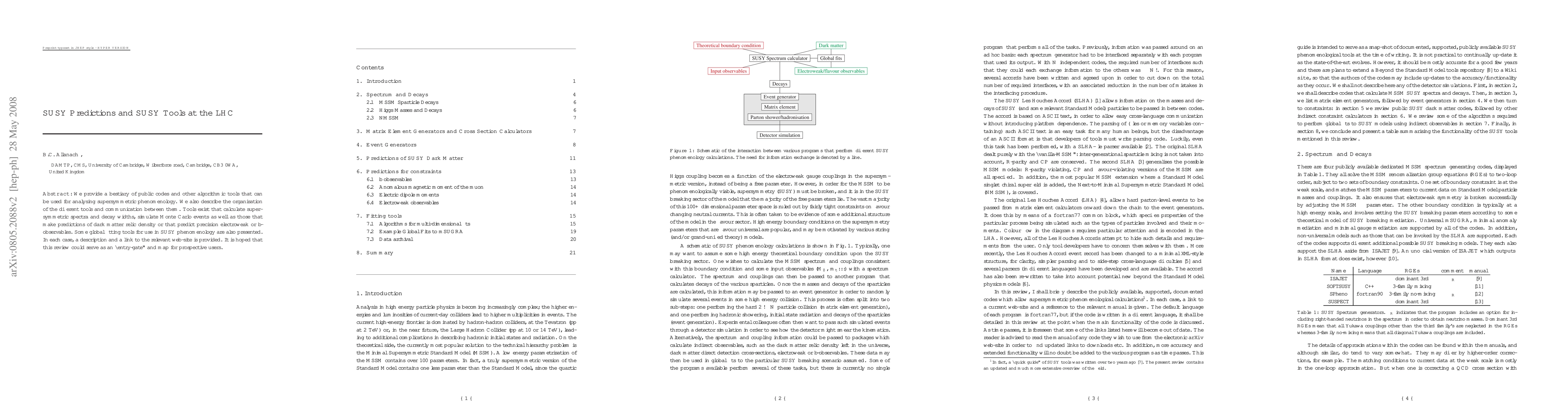 This paper catalogs and describes various public tools for analyzing supersymmetric phenomenology at the LHC, including codes for calculating spectra, simulating events, and predicting dark matter and electroweak observables. It aims to serve as a comprehensive guide for researchers entering the field of SUSY studies.