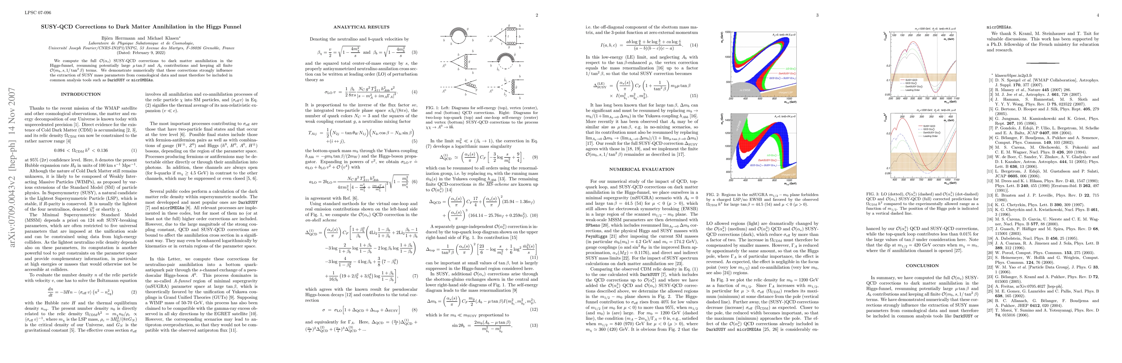 The research computes the full O(αs) SUSY-QCD corrections to dark matter annihilation in the Higgs-funnel, resumming potentially large μ tan β and A_b contributions while keeping all finite O(m_b, s, 1/tan^2 β) terms.