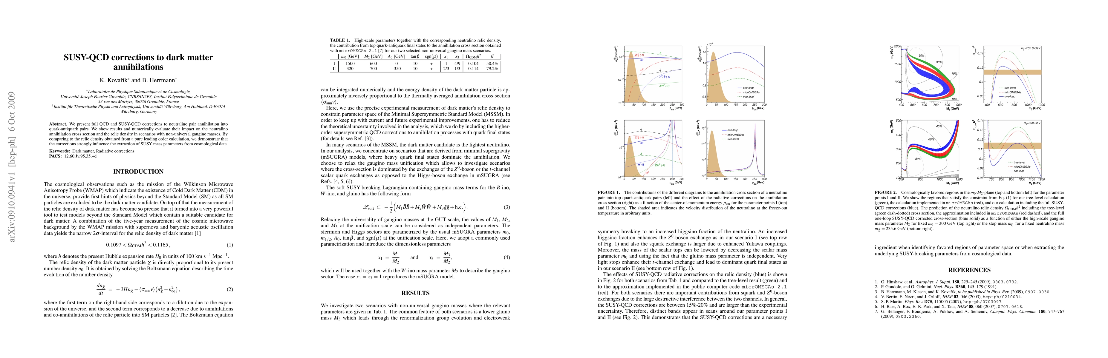 This paper evaluates full QCD and SUSY-QCD corrections to neutralino annihilation into quark-antiquark pairs, demonstrating their significant impact on the neutralino annihilation cross section and relic density. The findings show that these corrections can strongly influence the extraction of SUSY mass parameters from cosmological data.