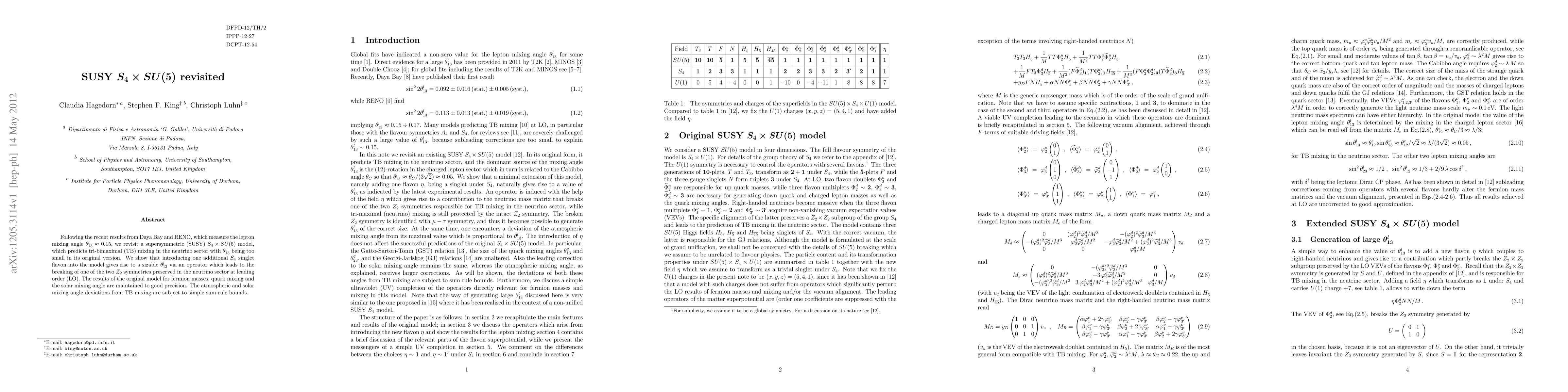 A supersymmetric model with an additional flavon introduces a sizable lepton mixing angle theta^l_13, reconciling the original prediction of tri-bimaximal mixing with recent experimental results.
