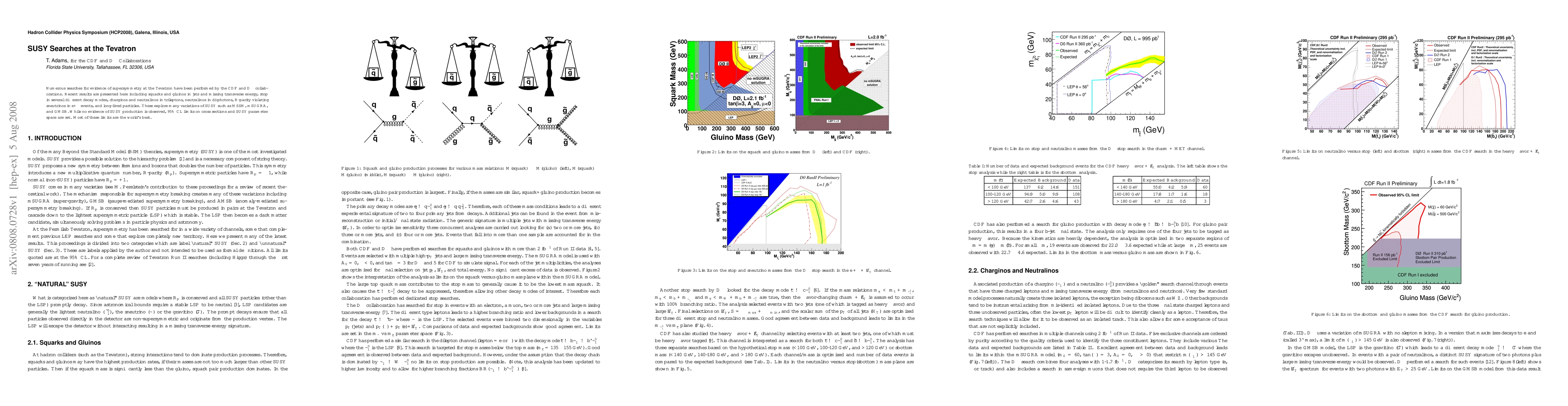 The CDF and D0 collaborations at the Tevatron conducted extensive searches for supersymmetry (SUSY) in various decay modes, including squarks, gluinos, and neutralinos. Despite no observed evidence, the results set stringent 95% confidence level limits on SUSY cross sections and parameter space, many of which are the best globally.