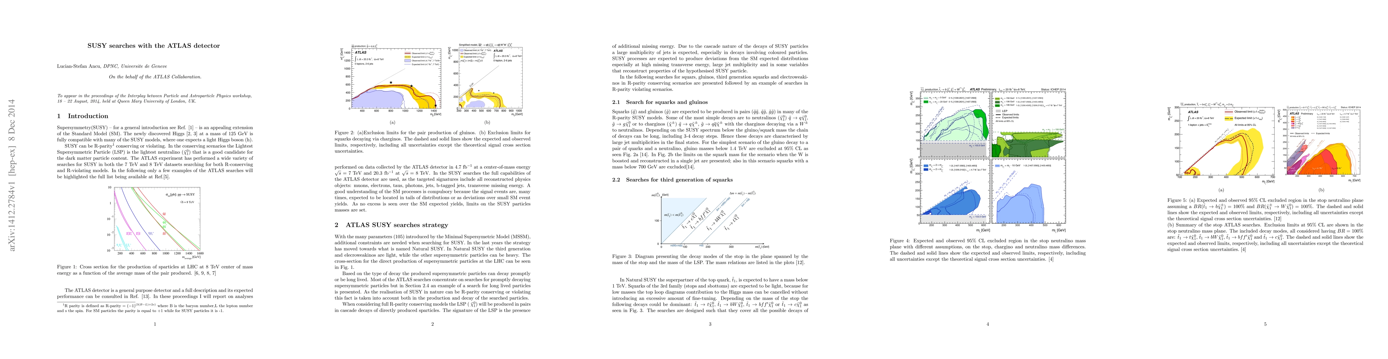 This paper summarizes various SUSY search efforts conducted by the ATLAS detector during LHC Run I, focusing on pp collisions at 7 TeV and 8 TeV, including investigations for squarks, gluinos, third-generation squarks, and electroweakinos under both R-parity conserving and violating scenarios.