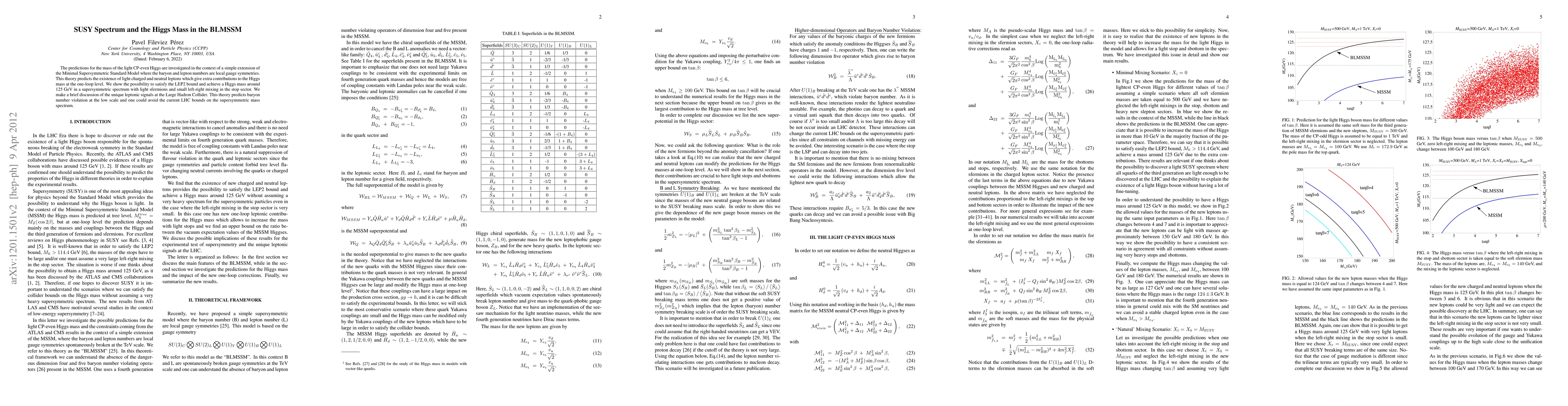 This paper explores the Higgs mass predictions in the BLMSSM, an extension of the Minimal Supersymmetric Standard Model with local baryon and lepton number symmetries. It demonstrates the potential for a 125 GeV Higgs mass with light sfermions and low stop mixing, while discussing unique leptonic signals at the LHC and the possibility of evading current SUSY mass bounds.