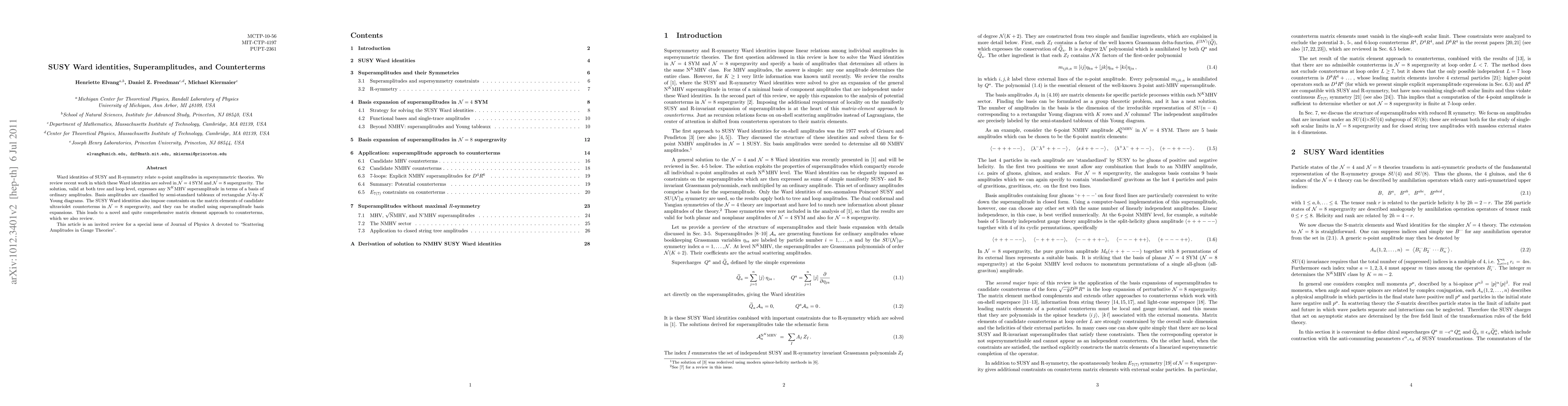 Ward identities of SUSY and R-symmetry relate n-point amplitudes in supersymmetric theories. We review recent work in which these Ward identities are solved in N=4 SYM and N=8 supergravity. The solution, valid at both tree and loop level, expresses any (Next-to)^K MHV superamplitude in terms of a basis of ordinary amplitudes. Basis amplitudes are classified by semi-standard tableaux of rectangular N-by-K Young diagrams. The SUSY Ward identities also impose constraints on the matrix elements of candidate ultraviolet counterterms in N=8 supergravity, and they can be studied using superamplitude basis expansions. This leads to a novel and quite comprehensive matrix element approach to counterterms, which we also review. This article is an invited review for a special issue of Journal of Physics A devoted to "Scattering Amplitudes in Gauge Theories".