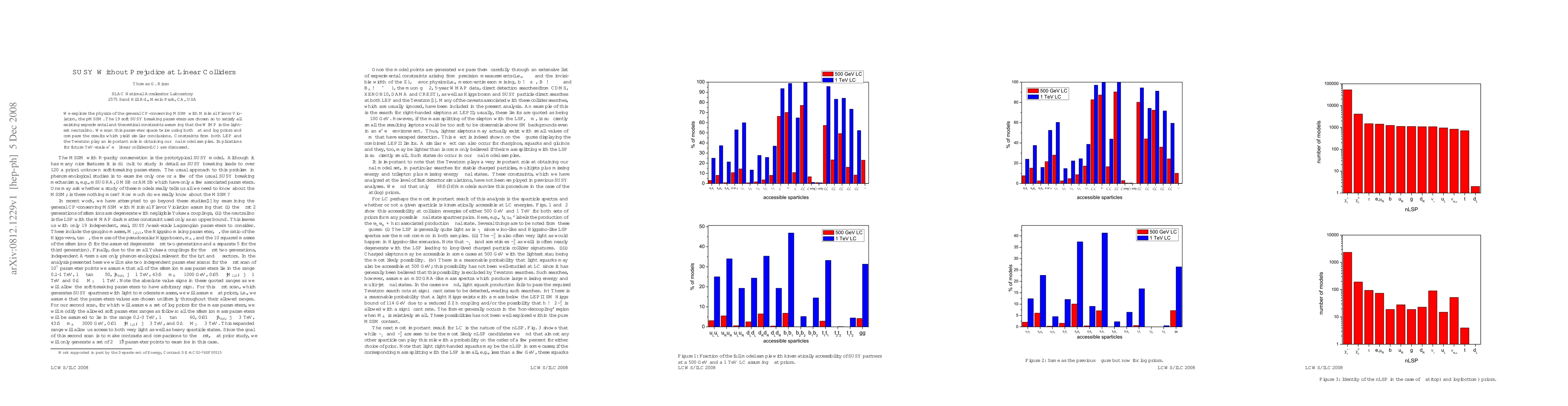 We explore the physics of the general CP-conserving MSSM with Minimal Flavor Violation, the pMSSM. The 19 soft SUSY breaking parameters are chosen so to satisfy all existing experimental and theoretical constraints assuming that the WIMP is the lightest neutralino. We scan this parameter space twice using both flat and log priors and compare the results which yield similar conclusions. Constraints from both LEP and the Tevatron play an important role in obtaining our final model samples. Implications for future TeV-scale $e^+e^-$ linear colliders(LC) are discussed.
