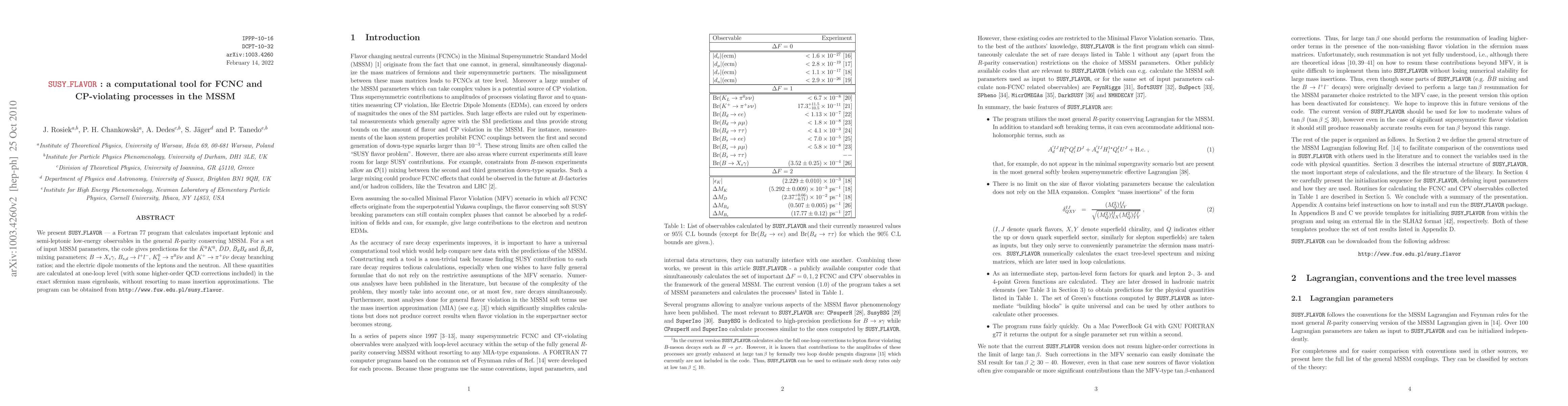 A computational tool called SUSY_FLAVOR has been developed to predict rare particle decays in supersymmetric models, providing precise calculations for key observables like branching ratios and electric dipole moments.