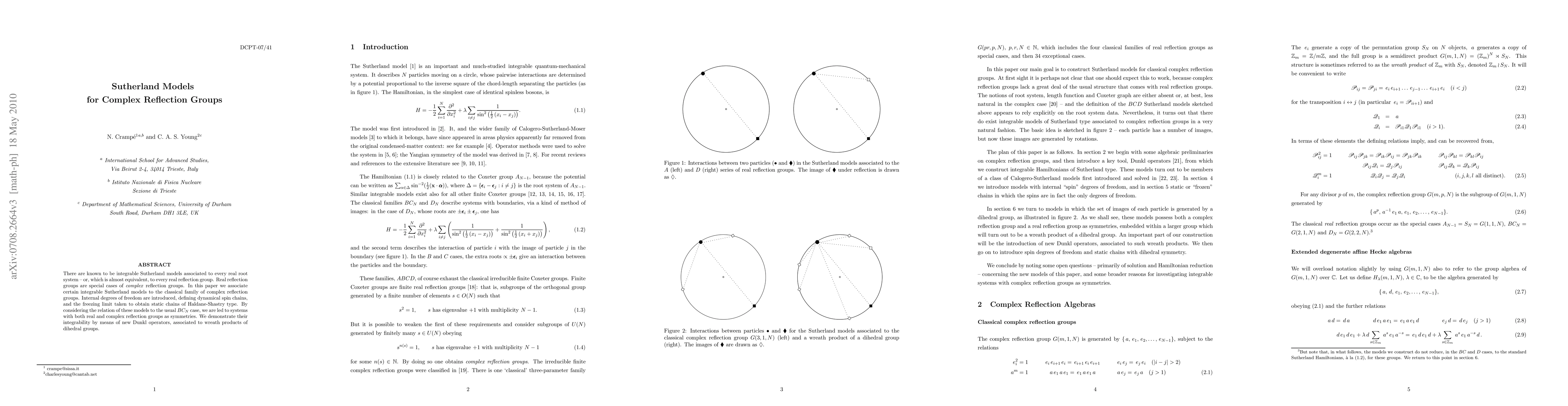 There are known to be integrable Sutherland models associated to every real root system -- or, which is almost equivalent, to every real reflection group. Real reflection groups are special cases of complex reflection groups. In this paper we associate certain integrable Sutherland models to the classical family of complex reflection groups. Internal degrees of freedom are introduced, defining dynamical spin chains, and the freezing limit taken to obtain static chains of Haldane-Shastry type. By considering the relation of these models to the usual BC_N case, we are led to systems with both real and complex reflection groups as symmetries. We demonstrate their integrability by means of new Dunkl operators, associated to wreath products of dihedral groups.