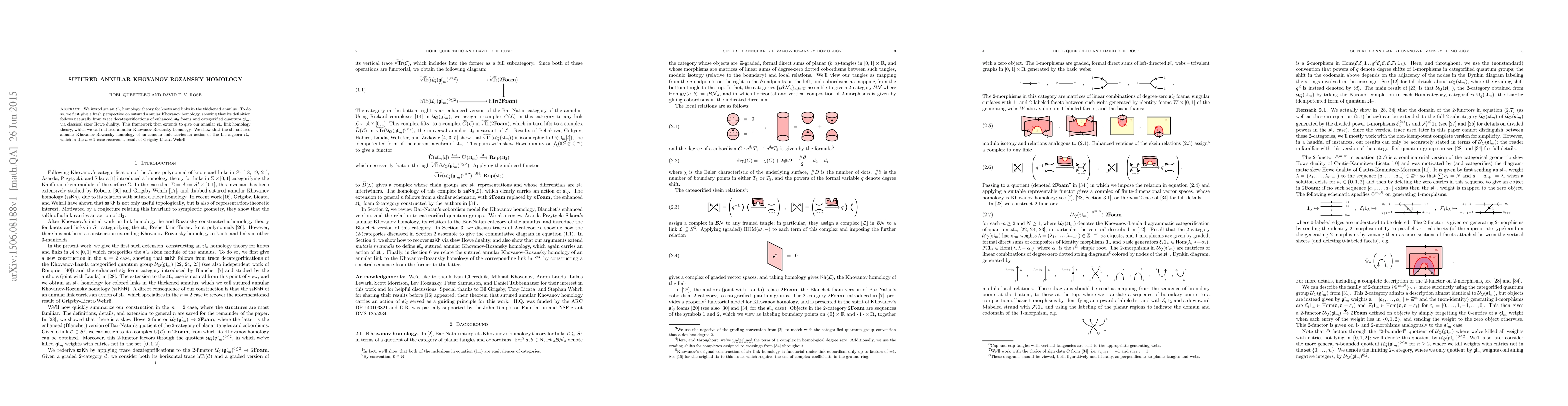 The paper introduces a new sl(n) homology theory for knots and links in thickened annuli, extending sutured annular Khovanov homology through enhanced sl(2) foams and classical skew Howe duality, and showing that it carries an action of the Lie algebra sl(n). In the n=2 case, it recovers known results by Grigsby-Licata-Wehrli.