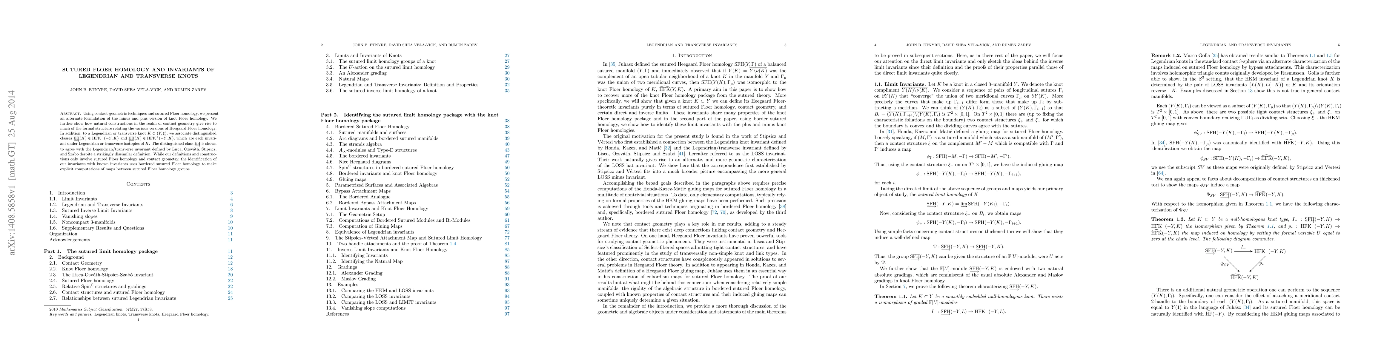 The paper introduces a novel approach to knot Floer homology by associating distinguished classes EHL(K) and EHIL(K) to Legendrian and transverse knots, respectively, and demonstrates their invariance under isotopy.