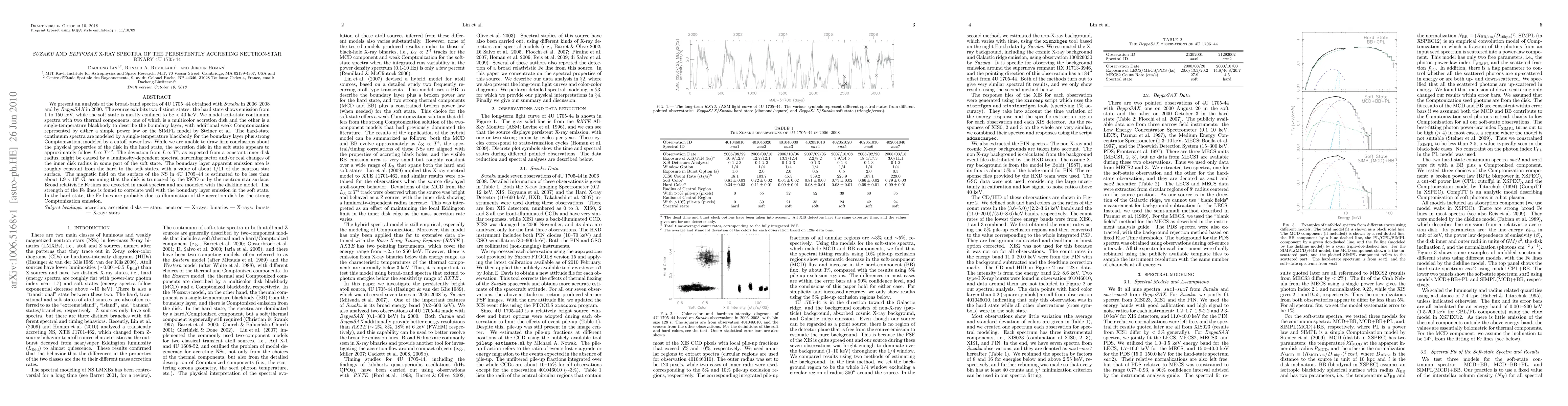 We present an analysis of the broad-band spectra of 4U~1705--44 obtained with {\it Suzaku} in 2006--2008 and by {\it BeppoSAX} in 2000. The source exhibits two distinct states: the hard state shows emission from 1 to 150 keV, while the soft state is mostly confined to be $<40$ keV. We model soft-state continuum spectra with two thermal components, one of which is a multicolor accretion disk and the other is a single-temperature blackbody to describe the boundary layer, with additional weak Comptonization represented by either a simple power law or the SIMPL model by Steiner et al. The hard-state continuum spectra are modeled by a single-temperature blackbody for the boundary layer plus strong Comptonization, modeled by a cutoff power law. While we are unable to draw firm conclusions about the physical properties of the disk in the hard state, the accretion disk in the soft state appears to approximately follow $L\propto T^{3.2}$. The deviation from $L\propto T^4$, as expected from a constant inner disk radius, might be caused by a luminosity-dependent spectral hardening factor and/or real changes of the inner disk radius in some part of the soft state. The boundary layer apparent emission area is roughly constant from the hard to the soft states, with a value of about 1/11 of the neutron star surface. The magnetic field on the surface of the NS in 4U~1705--44 is estimated to be less than about $1.9\times 10^8$ G, assuming that the disk is truncated by the ISCO or by the neutron star surface. Broad relativistic Fe lines are detected in most spectra and are modeled with the diskline model. The strength of the Fe lines is found to correlate well with the boundary layer emission in the soft state. In the hard state, the Fe lines are probably due to illumination of the accretion disk by the strong Comptonization emission.