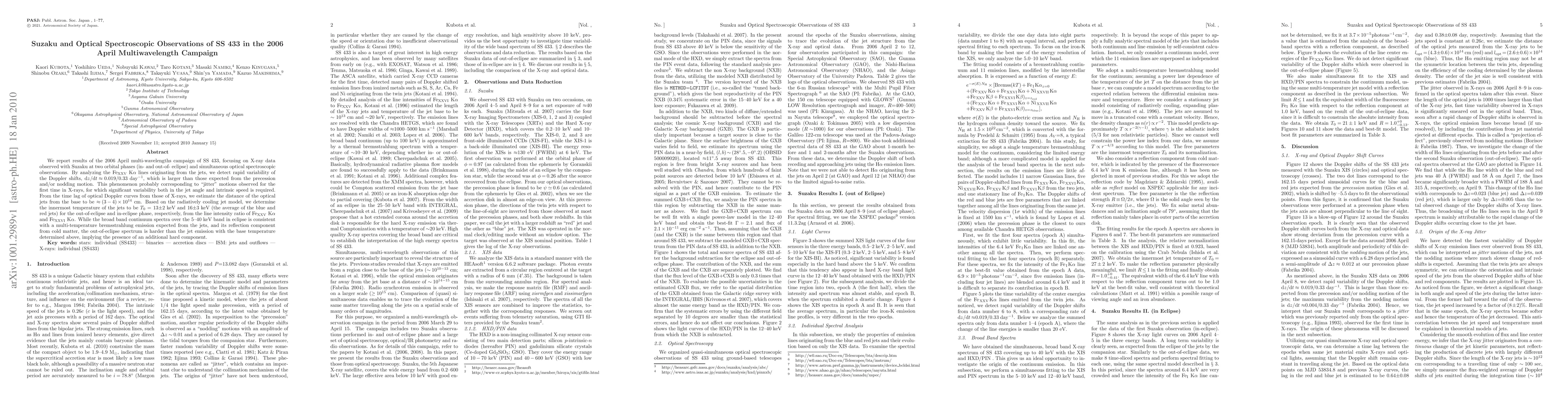 The 2006 SS 433 multiwavelength campaign revealed rapid X-ray Doppler shift variability, indicating 'jitter' motions in the jets for the first time. Optical spectroscopy estimated the distance of optical jets from the base and determined the innermost temperature of the jets, while X-ray spectral analysis discovered an additional hard component in the out-of-eclipse spectrum.