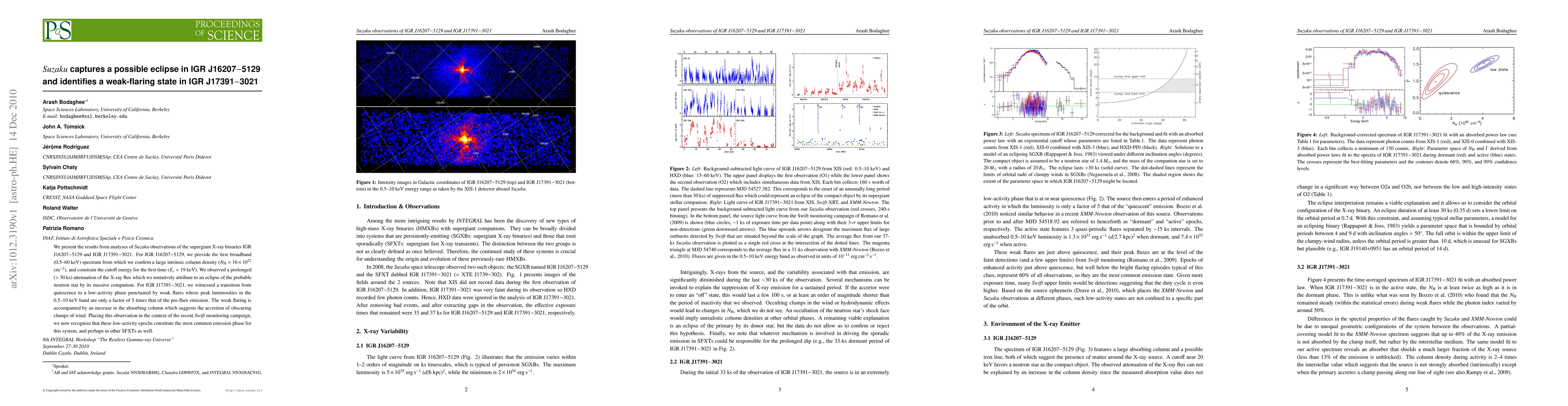 We present the results from analyses of Suzaku observations of the supergiant X-ray binaries IGR J16207-5129 and IGR J17391-3021. For IGR J16207-5129, we provide the first broadband (0.5--60 keV) spectrum from which we confirm a large intrinsic column density (nH = 16e22 /cm2), and constrain the cutoff energy for the first time (Ec = 19 keV). We observed a prolonged (> 30 ks) attenuation of the X-ray flux which we tentatively attribute to an eclipse of the probable neutron star by its massive companion. For IGR J17391-3021, we witnessed a transition from quiescence to a low-activity phase punctuated by weak flares whose peak luminosities in the 0.5--10 keV band are only a factor of 5 times that of the pre-flare emission. The weak flaring is accompanied by an increase in the absorbing column which suggests the accretion of obscuring clumps of wind. Placing this observation in the context of the recent Swift monitoring campaign, we now recognize that these low-activity epochs constitute the most common emission phase for this system, and perhaps in other SFXTs as well.