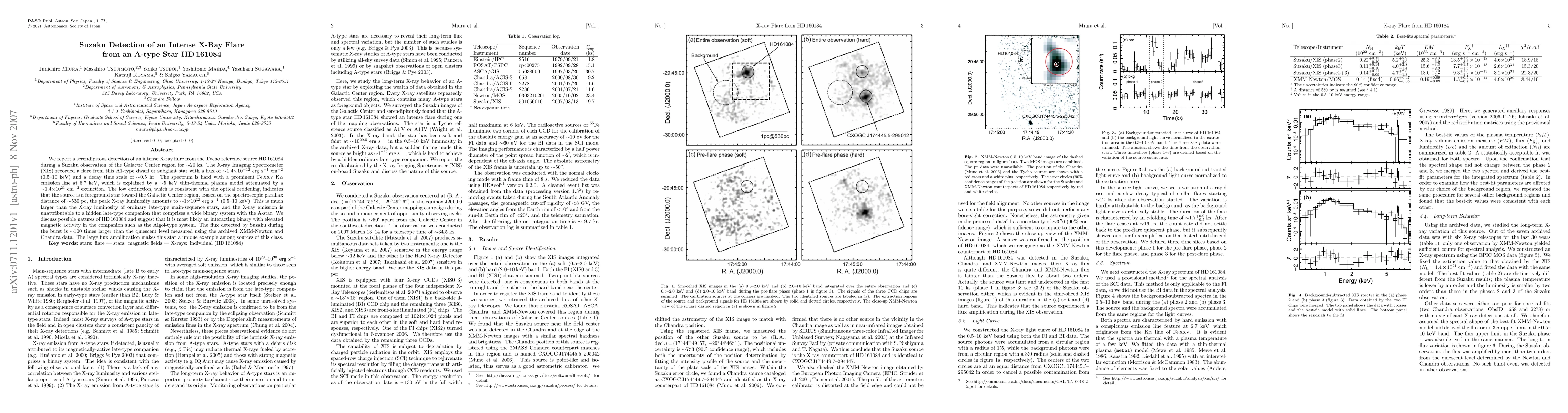 The Suzaku detection of an intense X-ray flare from the A-type star HD 161084 reveals a peak flux 100 times greater than its normal state, suggesting it is an interacting binary with high magnetic activity. The flare's hard spectrum and prominent Fe XXV K alpha emission indicate a 5 keV thermal plasma, with a luminosity much higher than typical late-type stars.