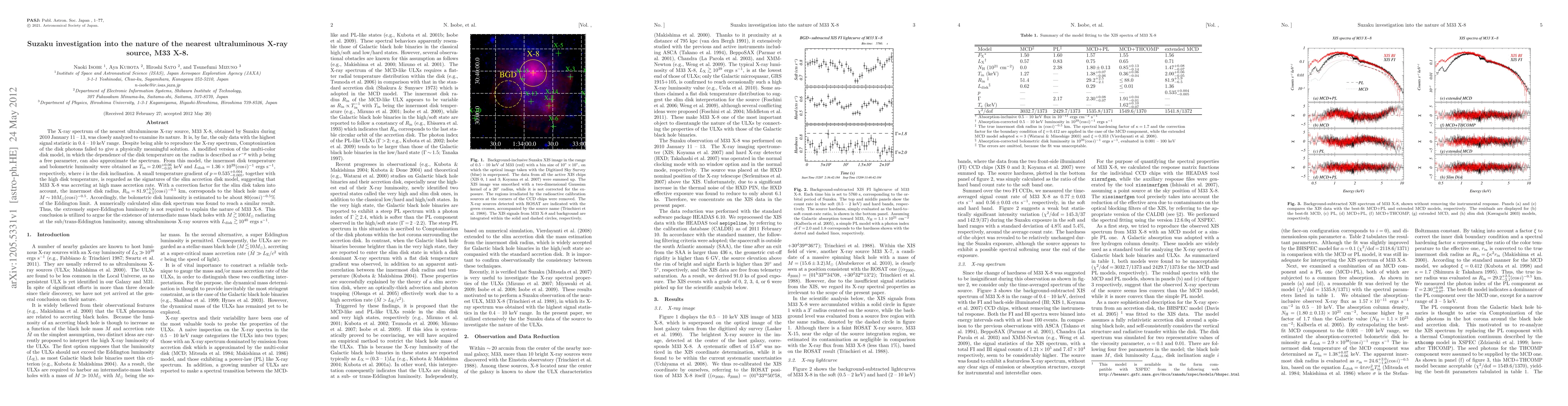 Researchers used data from the Suzaku spacecraft to analyze an ultraluminous X-ray source, M33 X-8, finding that it may be powered by a slim accretion disk around an intermediate-mass black hole radiating at sub-Eddington luminosity.