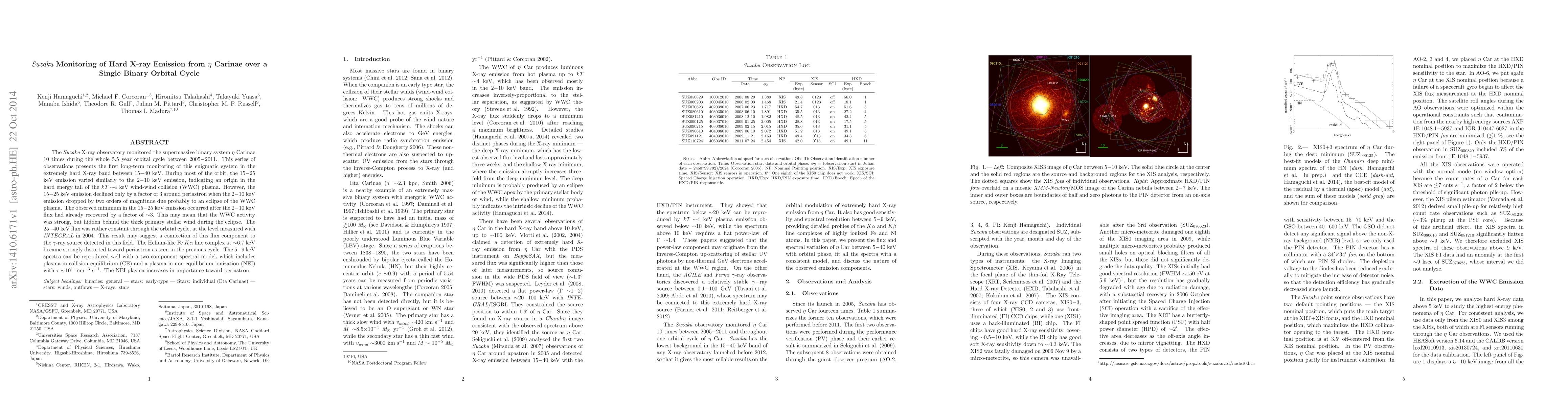 The Suzaku X-ray observatory monitored the supermassive binary system Eta Carinae 10 times during the whole 5.5 year orbital cycle between 2005-2011. This series of observations presents the first long-term monitoring of this enigmatic system in the extremely hard X-ray band between 15-40 keV. During most of the orbit, the 15-25 keV emission varied similarly to the 2-10 keV emission, indicating an origin in the hard energy tail of the kT ~4 keV wind-wind collision (WWC) plasma. However, the 15-25 keV emission declined only by a factor of 3 around periastron when the 2-10 keV emission dropped by two orders of magnitude due probably to an eclipse of the WWC plasma. The observed minimum in the 15-25 keV emission occurred after the 2-10 keV flux had already recovered by a factor of ~3. This may mean that the WWC activity was strong, but hidden behind the thick primary stellar wind during the eclipse. The 25-40 keV flux was rather constant through the orbital cycle, at the level measured with INTEGRAL in 2004. This result may suggest a connection of this flux component to the gamma-ray source detected in this field. The Helium-like Fe Kalpha line complex at ~6.7 keV became strongly distorted toward periastron as seen in the previous cycle. The 5-9 keV spectra can be reproduced well with a two-component spectral model, which includes plasma in collision equilibrium (CE) and a plasma in non-equilibrium ionization (NEI) with tau ~1e11 cm-3 s-1. The NEI plasma increases in importance toward periastron.