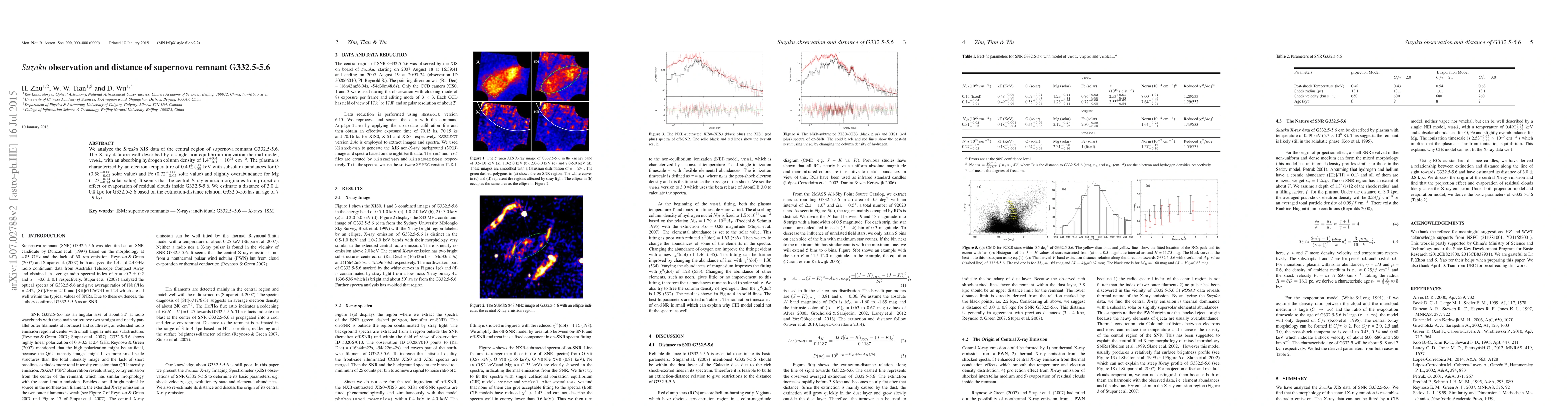 Researchers analyzed X-ray data from supernova remnant G332.5-5.6, estimating a distance of 3.0 kpc based on extinction-distance relation and an age of 7-9 kyr.