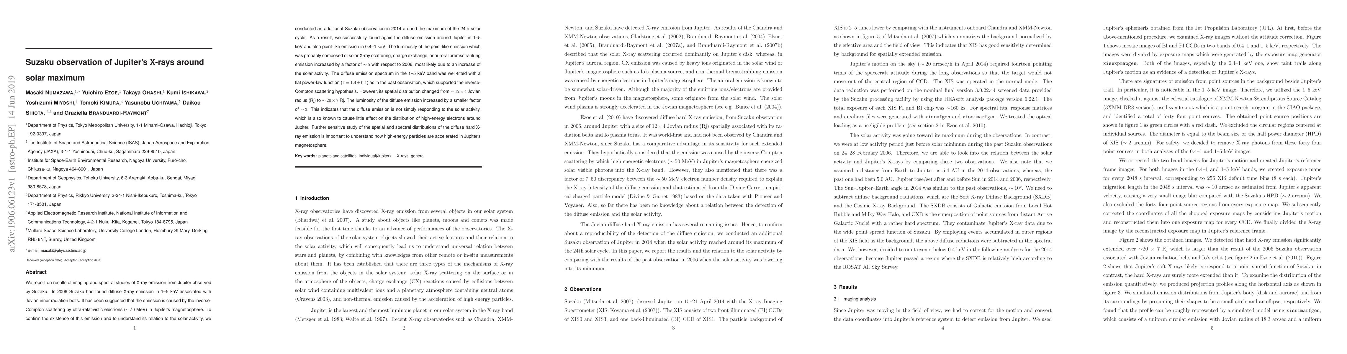The Suzaku observation confirmed the presence of diffuse and point-like X-ray emissions around Jupiter in 2014, showing an increase in point-like emission likely due to heightened solar activity. The diffuse emission's spectrum supported the inverse-Compton scattering hypothesis, but its spatial distribution and luminosity varied independently of solar activity, indicating complex interactions in Jupiter's magnetosphere.